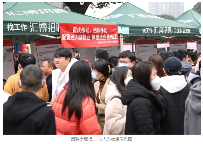 此次参展的337家企业中,包含京东物流、赛力斯集团、卓通汽车、京东方、伟星建材、力帆科技集团等优质企业。 其中,不乏世界500强、中国500强、重庆百强企业,涉及汽车制造、装备制造、智能机器人、物流、生物医药、互联网、酒店餐饮、专业服务等领域。 参与企业共提供了新媒体运营、金融客服、商务顾问、市场管理、前台接待、质量工程师、电气工程师、电子工程师、物流专员、快递员等超1.8万个岗位。 江北区人力社保局相关负责人介绍,春节过后,江北区劳动力市场加速回暖,特别是汽车、金融、商贸、生物医药等重点行业呈现“供需两旺”。 本次招聘会,江北区组织72家企业参加,占全市参会企业总数的21.3%,提供新媒体运营、金融客服、电气工程师、软件开发、信息工程等岗位3947个。 川渝协同 四川多家企业来渝揽才 “你们单位在广安呀?” “广安,重庆都有我们的业务,工作地可以随便选。” 此次招聘会还特别设置了四川企业专区。其中,广安某新能源企业第一次来渝招聘。 “我们以前是在四川招了人,然后派到重庆来工作。此次我们专门来重庆招聘,这样应聘人员的生活工作也能相对稳定。”该公司人事专员向女士称,川渝联合招聘,在满足两地招工需求的同时,拓宽了招聘渠道,为后续企业技能人才引进提供了有力支撑。 重庆市“春风行动”还将持续至3月底,人社部门将组织开展3000场以上招聘活动,提供100万个就业岗位,集中帮扶外出务工人员、就业困难人员等劳动者就业创业,服务企业复工复产,做到就业有支持、用工有保障、满意有提升。
