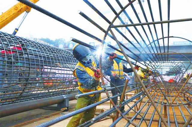 快速路六纵线南段项目工地上,工人正在抓紧施工