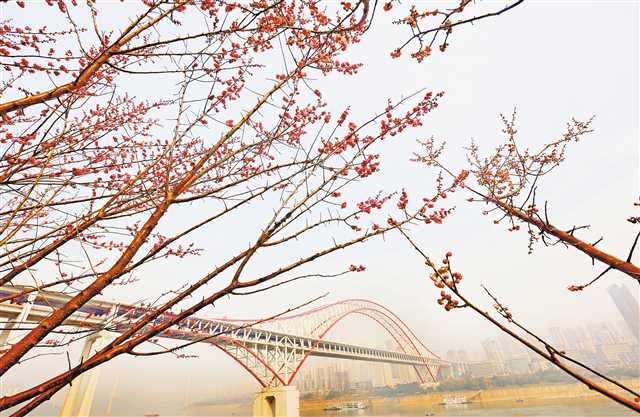 1月31日,江北区北滨路红梅绽放。特约摄影 钟志兵/视觉重庆