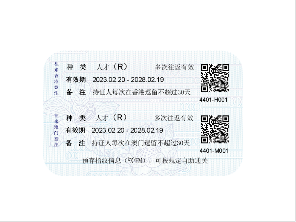 记者9日从中华人民共和国出入境管理局获悉,为便利粤港澳大湾区人才从事科研学术交流活动,促进服务粤港澳大湾区建设发展,自2023年2月20日起在粤港澳大湾区内地城市试点实施往来港澳人才签注政策。 往来港澳人才签注式样。(中华人民共和国出入境管理局供图) 根据该政策,在粤港澳大湾区工作的内地6类人才可以申办往来港澳人才签注,包括:杰出人才,即对湾区建设发展作出重大突出贡献或者湾区急需的顶尖人才;科研人才,即湾区科研机构副高级以上职称人员;文教人才,即湾区高等院校副高级以上职称人员;卫健人才,即湾区副高级职称以上卫生健康专业技术人才及卫生研究人才;法律人才,即参与在香港、澳门法律仲裁程序的内地仲裁员,处理内地与香港、内地与澳门投资争端的内地调解员等;其他人才,即湾区人才、科技主管部门认定的高层次管理和专业技术人员。 上述6类人才可以根据实际需要,单独或者同时申请办理赴香港人才签注和赴澳门人才签注。其中杰出人才可以申办有效期5年的人才签注,科研、文教、卫健人才可以申办有效期3年的人才签注,法律、其他类人才可以申办有效期1年的人才签注。持证人在签注有效期内可以不限次数往来香港或者澳门地区,每次在香港或者澳门停留不超过30天。杰出人才可以由本人向粤港澳大湾区任一县级以上公安机关出入境管理机构提出申请,其他5类人才应由本人向工作所在地的县级以上公安机关出入境管理机构提出申请。人才签注的申请材料和申办手续,可通过中华人民共和国出入境管理局、广东省公安厅出入境管理局政府网站或者12367服务平台查询。 中华人民共和国出入境管理局有关负责人表示,在粤港澳大湾区试点实施往来港澳人才签注政策,是深入贯彻党中央关于粤港澳大湾区建设决策部署,服务促进高水平开放,促进港澳地区长期繁荣稳定,深化内地与港澳交流合作的出入境政策创新举措。政策的实施将有力促进湾区人才、技术等要素便捷高效有序流动,更好满足湾区内人才之间交流交往的新需求新期待,为内地和港澳经济社会发展注入新活力新动能。 原标题:2023年2月20日起粤港澳大湾区内地城市试点实施往来港澳人才签注政策 编辑:蔡静 校审:罗再芳 总值班:严一格 |