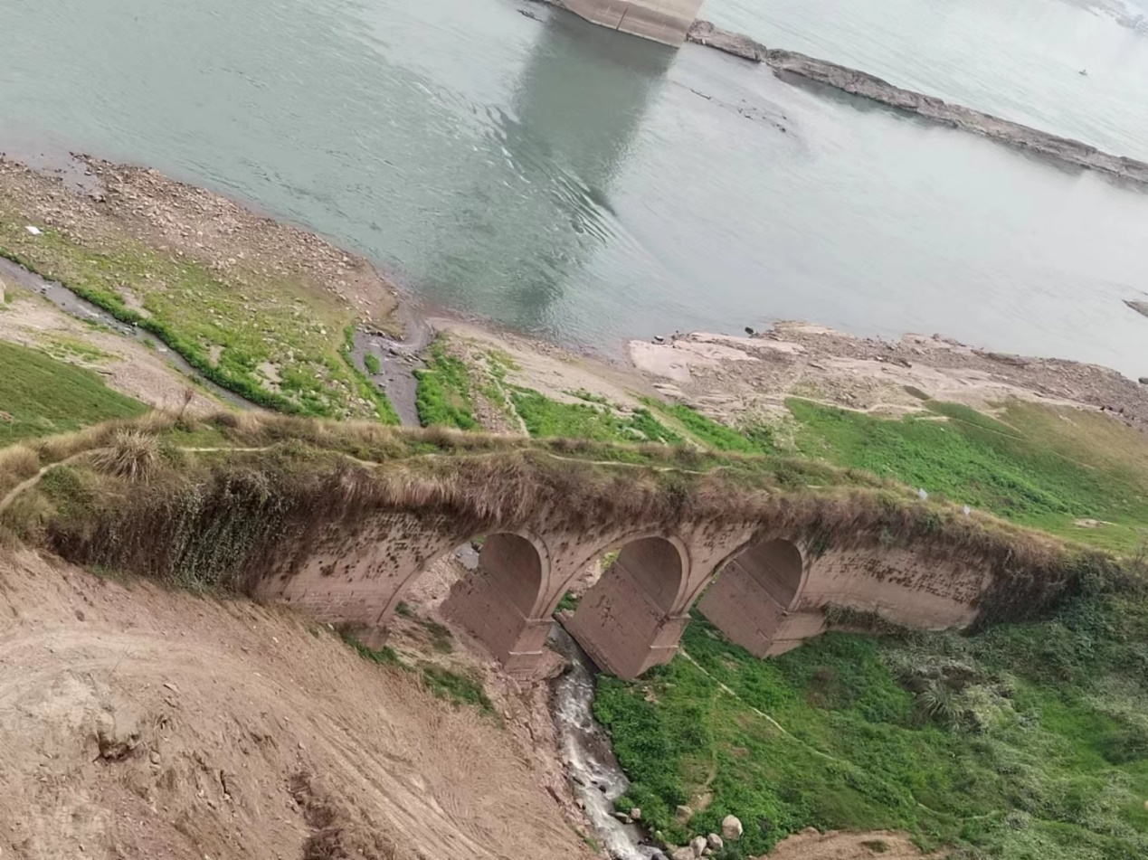 导航:茅溪偃月桥(位于重庆大佛寺长江大桥东北端) 特色:古桥静美,近可看大江东去,远可眺望大佛寺长江大桥和更远处的朝天门长江大桥,三桥同框取景很美,带鱼眼镜头的“专业选手”,据说还能拍到四桥同框。 茅溪偃月桥是—座石结构三孔拱桥。据《重庆市江北区文物集》记载,偃月桥修建于清道光二十八年,全长172米,宽8.1米,高约20米,三孔,单孔跨径12米,每孔由60道横石组成拱圈(桥跨结构的主要承载部分)。 偃月桥初成,东桥头立有两根石柱,左柱镌“万里长征,此为古道”,右柱镌“大江东去,不择溪流”。 据当地人说,以前没长草的时候,可在中孔的顶上看到“大清道光二十八年戊申仲夏日吉旦,存心堂捐建”的字样。《江北厅志》载:“江北所辖之地,尽属山乡,偶逢霪雨弥旬,山水泛涨,则一溪一涧,举步维艰,不有桥梁,其何以济?念及此,则除道成梁不可不极极也。”便是当时“存心堂”号召大家建桥的文字记录。 据说,偃月桥两边最初设置石护栏,除了保障当地居民出入安全,有送紧急公文的,肩荷物担的,昼夜兼程也不用担心发生坠桥之事。这桥,曾是往昔沿长江进入重庆古城的商旅大道。 茅溪,是根据当地的地理实体而得名。据悉,此地原为季节性溪沟,溪沟两旁茅草丛生,人们在此建房居住,形成居民点,故称茅溪。偃月之名,一说名字的来源是来自宋代诗人杨万里的诗句——“有新月偃仰,余之不嗟”,一说是形如关公的青龙偃月刀而得名。总之,茅溪偃月桥真是个好名字。不过,因为古桥有三孔,当地人更习惯称“三洞桥”。 当地居民给记者指路,说本来有几条小路可以下去,他们都曾下去过,如今因附近施工都被挡住了。 据附近的施工牌告示,此工程由重庆城建控股(集团)有限责任公司修建北滨路东延伸段(一期)道路工程,于三月一日开始封闭施工,工期为800天。修建完成后将提升周边居民的生活品质。 三洞桥(拱北桥)