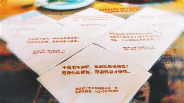 黎杰袁设计的反诈餐巾纸。(受访者供图) “当时多亏了师傅自制的路线图和经验分享,我从入职到上手只用了三四天时间。”5月10日,向重庆日报美好生活热线谈起刚跑外卖的那段时光,外卖骑手郭梦江说,自己从新骑手快速成长为老师傅,得益于师傅黎杰袁向他传授的“秘诀”。 郭梦江口中的黎杰袁今年只有28岁,两年前被评为“重庆市第六届劳动模范”,成为重庆最年轻的劳模。每天接单跑单、看似寻常的外卖骑手何以当上劳模,重庆日报美好生活热线记者进行了一番打探。 新人有了他的自制路线图 最快半月就能成熟手 2019年初,黎杰袁成为某物流公司大学城站的一名骑手。 当骑手,黎杰袁一天的电动车里程大概在120公里左右,每天微信步数三万步“打底”,他跑遍了大学城几乎所有的商圈、小区和学校,熟悉到基本不用导航,百分之七八十的小区进去后不看指示牌就找得到路。 2020年6月,黎杰袁升任大学城站站长,负责管理和调度工作。 虽然不用再出门跑单,可黎杰袁并不认为自己的工作就轻松了。 作为站长,一项很重要的任务就是培训新人,对此,黎杰袁自有一套办法。 新人入职,为了帮助他们更快适应,黎杰袁自制了一张路线图,用文字写下商家的布局和送餐区域。 比如,龙湖U城商场里,餐饮店分布在LG层和四层,一点点、茶白道、德克士、汉堡王等奶茶、快餐类餐饮店在LG层,四层则是兰木肆、楼兰等连锁大餐饮商家。这其中订单最多的为奶茶类和快餐类,奶茶类出单时间集中在下午,快餐类的订单基本上全天候都有。 送餐区域主要包括龙湖U城1组团、3组团、7组团、9组团,富力城2期,四川美术学院南门、重庆大学西门、重庆大学小北门、重庆师范大学南门等等。 不仅如此,黎杰袁会让每一位新人在前期试岗阶段到大学城的商圈、小区、学校走一遍,把餐饮门店、小区导视图、学校布局等拍下来,既提前熟悉了路线,后期送餐时也能随时拿出来翻看。 黎杰袁还向新人们传授经验,像连锁品牌这样的大餐饮商家出餐较慢,而快餐店、小吃店出餐快,可以先到快餐店取餐,然后再去大餐饮店,这样一个订单最起码能节约10分钟,一天下来就能多送10单,不仅提升了效率,增加收入,顾客的体验度也会更好。 “师傅给我们做新人培训时,他就给了我一张A4纸打印出来的路线图,我先看几遍,然后再去现场走一遍,拍个照。”郭梦江说,当他正式开始跑单后,脑海里就有了商家的位置,到了之后就能直奔商家取餐。 郭梦江还说,像接到小面、米线这样的订单,快到商家时就给老板打电话让他下锅开煮,既免去了等餐时间,餐食也不会冷掉。而这些,都是黎杰袁手把手传授的经验。 “新人一来就给他们派单,如果不熟悉路线送单时肯定会着急,就像一只‘无头苍蝇’,可能需要花上半个小时才能找到一家准确的商家,大大浪费了时间。”黎杰袁告诉记者,新骑手有了他的这些“法宝”,最快半个月就能上手熟悉,可以按批次接单,平均一天能接40单左右。 由于熟悉得快,郭梦江入职后三四天就开始接单,而且一次性能接两三个单,几乎没有走错过路。 突发奇想 设计“反诈餐巾纸”送到顾客手中 身为站长,黎杰袁平时也会关注骑手们的日常生活。 2022年3月,大学城站点一名骑手接了个电话,言语间闪烁其词,显得很慌张。在听他说到“好,马上打钱”时,黎杰袁意识到这个骑手可能遭遇了电信诈骗。 黎杰袁立即在手机上打字,示意骑手挂断电话。一问才知,原来骑手春节前在网上贷了款,对方以贷款手续费名义让他立即打款,否则就不给贷款。 “他挂了电话后一查,对方果然就是骗子。”黎杰袁说,自己身边有朋友还陷入过网络赌博,深受其害,“前期故意让你赢,觉得来钱快,等上瘾后再骗光你的钱,常常发了工资可能一个晚上就被骗光了。” 有一次,黎杰袁的外卖送到了派出所,他注意到派出所门口的反诈宣传展板。“现在诈骗新花样频出,既然做骑手每天接触的人这么多,能不能利用自身工作的便利性,为反诈做点什么?”黎杰袁心里一琢磨,顿时有了主意。 “我们平时送餐,餐巾纸必不可少,也是使用率很高的日常用品。如果可以把反诈宣传标语和案例印在餐巾纸上,不就是把反诈宣传端上了餐桌吗?”于是,黎杰袁在网上搜集反诈宣传的案例,进行整理和编辑,看到有意思的反诈宣传标语也及时记下来。下班后,再反复推敲、修改,还在去派出所送餐时向民警请教。 在“反诈餐巾纸”的设计上,黎杰袁也细心参考了多家奶茶店、咖啡店和餐馆的餐巾纸,比如字体该用什么颜色、斜版还是竖版。经过一个多月的反复修改,反诈餐巾纸终于定稿。 黎杰袁最初的想法,是在站点内部进行反诈宣传,防止骑手们上当受骗。但后来他又想到,站点所在区域是大学聚集地,学生们肯定也有类似经历,何不通过骑手每天的送餐,把餐巾纸送到更多人手中,提高大家的反诈意识。 2022年4月,公司和平台出资将黎杰袁设计的“反诈餐巾纸”印了出来,共有15万份,全部放在站点,骑手们早上出发时带一些在身上,每跑一单就向顾客发放。 “不会吧不会吧,难道刷单也信他?无视他无视他,捂紧钱袋才最佳!”“隔壁高校的李同学在网上贷款,按照对方要求缴了2000元保证金,然后……怎么可能还有然后?”餐巾纸上不仅印有反诈宣传语,还有重庆高新区公安分局的报警电话。 “这些餐巾纸4个月左右就发放完了,是一项很有意义的公