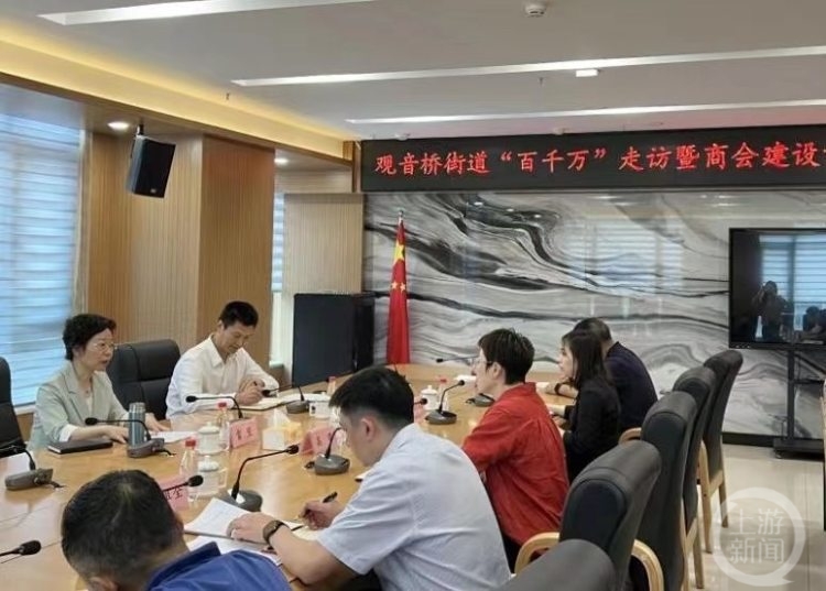 近日,江北区委常委、统战部部长雷翌,区委统战部副部长、区工商联党组书记吴雷波带队深入一线走访调研。观音桥街道党工委书记高璐,党工委委员、办事处副主任郑祖全,观音桥商会会长冉巍等参加。 在观音桥街道,调研组先后参观了业务大厅、“老马带小马”基层治理缩影、学习培训室、办公区,详细了解观音桥街道“百千万”工作推进及商会阵地建设情况。
