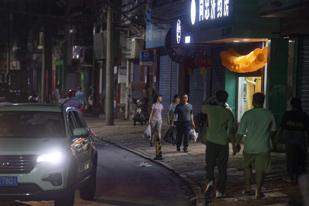 ▲7月6日夜晚,万州区五桥街道,街头居民们正在散步,生活秩序有序恢复。