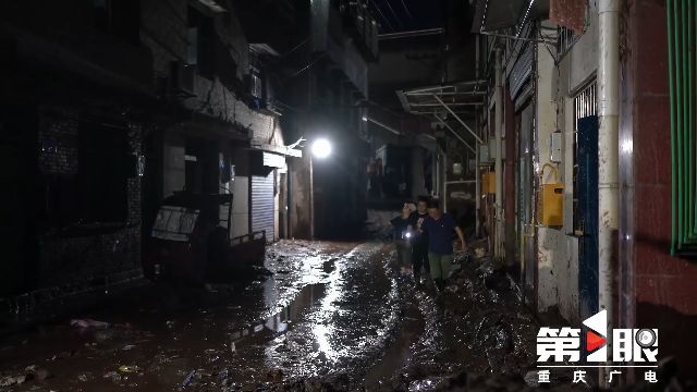 洪水刚退,五间桥社区尚未完全恢复供电,大量湿滑厚重的淤泥一时半会儿还难以彻底清除干净,因此,这里不具备夜间抢险救灾的作业条件,忙碌了一天的抢险人员得以暂时修整。
