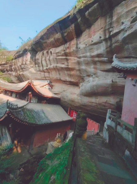 寒岩上,刻于清同治时期的摩崖石刻——《有龙则灵》。 华岩古洞 千年仍存 当天秋日胜春,天蓝似水染无尘。记者来到九龙坡区的华岩风景区,途中看到游客三三两两准备离开,便询问华岩古洞在何处?两位外地来的游客喘了一口气笑着回答:刚游完华岩洞准备离开,也是根据路标找到的。请严格按照路标指示牌走,就绝对不会错。 华岩风景区集寺、湖、园、林、山、洞于一体,是国家4A级旅游风景名胜区、市级文物保护单位,有巴山灵境之称。而华岩古洞,有洞天福地美誉。民间传说,古洞石髓下滴成水花,故称华(花)岩。或曰,清初圣可法师挂锡于此,夜梦五色莲花大如车轮,因此有华岩之名。 据《华岩寺志》载:华岩洞在大老山(又名待漏山)东南,山不甚高,洞据其巅,纵而不深,大石上覆,泉流旁滴,依洞建庙,梁以内在洞中,梁以外在洞外。 那据说有上千年历史的华岩古洞还在吗?记者咨询了几位工作人员,回答称:如今的千佛洞就是华岩古洞,洞深且窄,因为以前开放时游客很多,担心游客安全,现暂未对外开放。