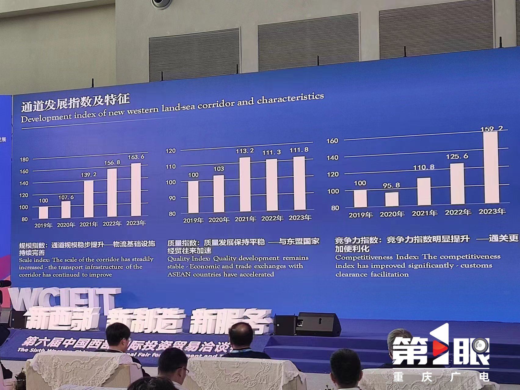 5月24日,2023年度西部陆海新通道发展指数(以下简称指数)在第六届中国西部国际投资贸易洽谈会现代物流服务现代化产业高质量发展推介会上发布。指数显示,西部陆海新通道建设发展持续跑出“加速度”。 经计算,2023年西部陆海新通道发展指数为151.5点,较2022年的135.2增长12.1%,呈现快速发展态势,反映通道建设呈现出强大韧性和活力。2023年是通道建设发展的动能转换的一年,规模指数增速收窄,质量指数增速由2022年的负增长扭转至正增长,竞争力指数增加值大幅提高。 西部陆海新通道发展指数是落实《“十四五”推进西部陆海新通道高质量建设实施方案》中“通道公共服务平台建设工程”的重要举措,以发展规模、发展质量、竞争力为三大主线,全面评估通道建设的进展和成效。指数由3个一级指数、13个二级指数和31个三级指标构成,以《西部陆海新通道总体规划》发布时间为基期,以100为基准。 具体来看,呈现三方面的主要特点: 通道规模指数稳步增长 由2022年的156.8上涨至163.6,同比增长4.3%,反映出西部陆海新通道沿线交通基础设施网络持续完善。截至2023年底,通道沿线省(区、市)铁路营业里程达到6.8万公里,占全国铁路营业里程比例由2019年的42.3%上升到2023年的43.1%。通道铁海联运班列、跨境公路班车等物流规模都有大幅上涨,2023年西部陆海新通道铁海联运班列到发合计11680列,运输集装箱58.4万标箱,同比增长7%。 质量指数稳中有升 由2022年的111.3微升至111.6。其中,对外开放指标表现亮眼,为109.5,同比上涨10.2%,反映出通道沿线地区与东盟国家经贸往来加速升温。2023年通道沿线省(区、市)与东盟十国进出口规模达到9115亿元,同比增长3.3%。 竞争力指数加倍提升 由2022年的125.6大涨至159.2,同比增长26.8%。物流成本、服务能力、通关便利化、港口竞争力指标都实现了不同程度增长。其中,通关便利化指数为439.8,同比增长321.9%。瑞丽公路口岸、湛江港、洋浦港进口平均通关时间大幅缩短,友谊关公路口岸出口平均时间降幅超90%,洋浦港进口平均通关时间有所增加。 面向未来,随着高水平共建西部陆海新通道深入推进,通道规模指数将稳定持续增长,质量和竞争力指数将成为指数上升的主要支撑力量。西部陆海新通道将进一步促进区域资源高效衔接、产业紧密互动,强化与周边国家的互联互通和经济合作,进而推动指数不断走高走强。 原标题:关注第六届西洽会 | 增长12.1%!2023年度西部陆海新通道发展指数发布 编辑:明爽 校审:吕文霁 总值班:杨飞 |