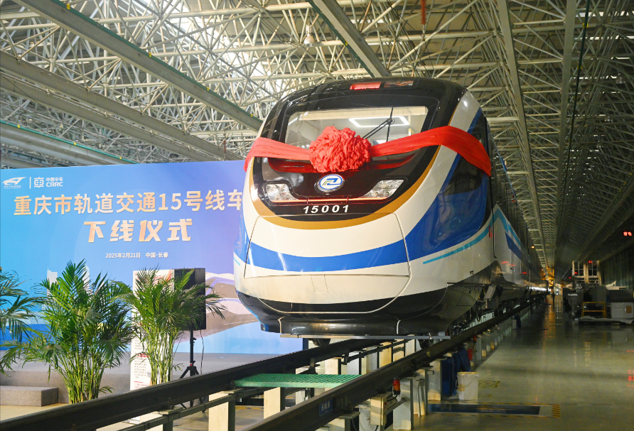 2月21日,重庆轨道交通15号线首列车下线仪式在中车长春轨道客车股份有限公司举行。作为重庆首条全自动运行城轨快线,15号线首列车的成功下线,标志着项目建设取得关键性进展。