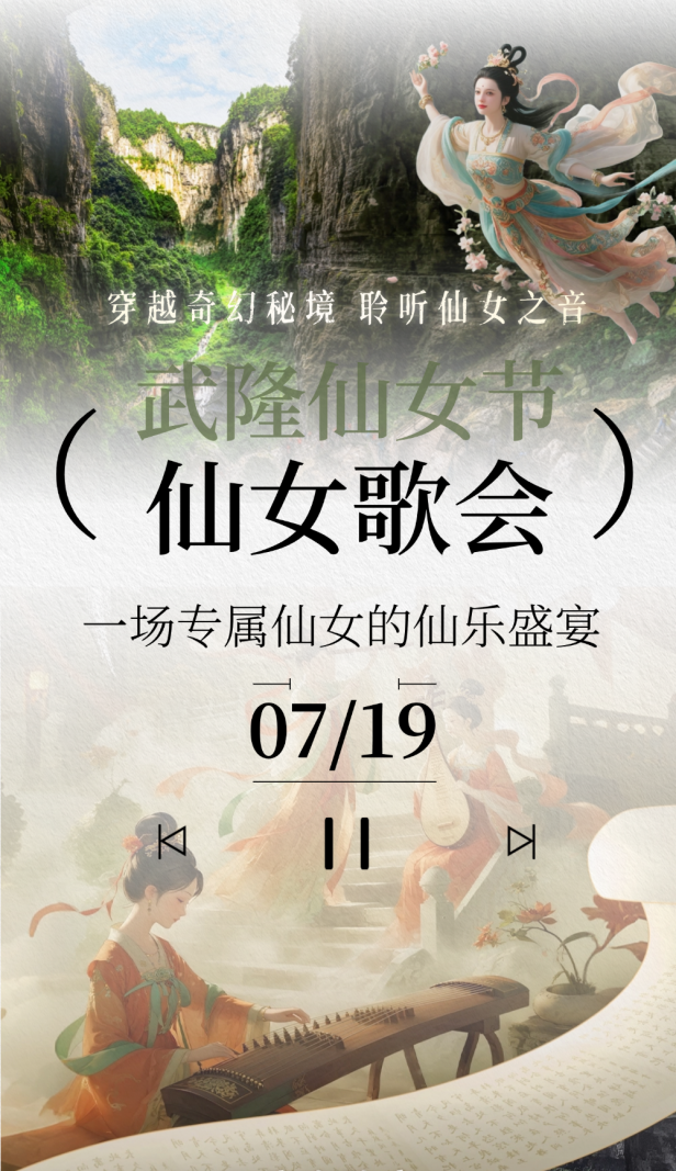 仙乐袅袅,裙袂翩跹!继上周末在仙女山大草原惊艳上演的“仙女大Show”后,本周六(7月19日),2025武隆“仙女节”的仙旅乐章将在世界自然遗产地——天生三桥·天福官驿迎来华彩续章!备受瞩目的“仙女歌会”即将于此震撼开启,特邀一众实力出众的国风音乐人及乐团,用动人旋律续写仙缘,唤醒山水之灵!