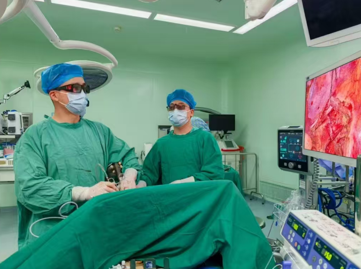 近日,重庆医科大学附属第三医院(方大医院)(以下简称:重医大附三院)胸外科团队在多学科协作下,成功完成西南地区首例ECMO(体外膜肺氧合)辅助下完全胸腔镜气管肿瘤切除及气管重建术。这一技术突破标志着该院在复杂疑难手术领域的卓越实力,也为ECMO技术下的临床应用提供了宝贵的经验,为疑难病症患者带来了新的治疗希望。 病情复杂:气管肿瘤如同“气道炸弹” 男性患者李某(化名),30岁,因长期反复咳嗽、气促等症状到重医大附三院呼吸内科就诊,经检查发现:其气管下段存在一特殊肿瘤,不仅向腔内生长导致气道狭窄,还穿透气管壁向腔外侵犯,病理提示存在恶性倾向。 为寻求最佳治疗方案,李某辗转市内外多家知名医院。然而,面对如此复杂棘手的病情,对比各家医院提出的方案,最终,患者毅然选择回到重医大附三院(方大医院),并向胸外科医生表达了希望微创治疗的意愿。 “气管就是人体呼吸的‘主通道’,这个肿瘤相当于长在呼吸系统这棵大树的‘树干’上,是个‘定时炸弹’。”重医大附三院(方大医院)胸外科副主任、主任医师王睿解释道,若不及时处理,肿瘤生长可能完全阻塞气道导致窒息,若肿瘤受到刺激破裂出血会立即危及生命。 技术突破:ECMO搭建“生命桥梁” “气管作为人体呼吸的重要通道,在狭小的空间进行手术操作并精准吻合,还不能造成缺氧,对医生经验和手术速度都有很高要求,毫无疑问,气管肿瘤手术是胸外科极其高难度的挑战,”王睿坦言,传统气管肿瘤手术大多医院都会选择开胸远端气管插管来完成,开胸手术创伤大、恢复慢,切断肋骨后患者容易出现长期胸痛;并且,这种做法会暂时阻断气管,患者术中可能面临呼吸暂停导致严重缺氧。 “如果采取既往常规手术方式,要安全地在胸腔镜微创下快速完成手术,难度极大。”王睿表示。 经过分析评估,医院多学科团队(胸外科、麻醉科、ICU、呼吸科、心脏血管外科、放射科等)进行了缜密讨论,专家们创新性地提出——采用ECMO辅助下的气管肿瘤手术,这样既可以保证患者术中不缺氧,又避免了气管插管的干扰,胸腔镜手术方案会更顺利地进行,同时专家们还对术中可能出现的各种并发症进行了充分讨论和制定处置预案。 多学科协作护航,4小时成功“排雷” 手术由胸外科主任汪天虎教授指导,王睿副主任主刀,联合手术团队与麻醉科、ECMO团队(由急诊与重症医学中心副主任韩鹃带队)进行,通过紧密配合,在胸腔镜技术支持下,团队仅通过两个3cm的小孔,精准解剖并定位出肿瘤位置。术中,ECMO系统稳定运行维持着患者生命体征,更为微创手术提供了理想条件。患者无创机械通气,气管处于静止状态,手术医生有充足的时间和清晰的术野来进行操作,整台手术展现了多学科协作的强大优势。 最终团队历时四小时在胸腔镜下彻底切除肿瘤并完成气管重建。术中出血量极少,手术圆满成功。 “体外膜肺氧合(Extracorporeal Membrane Oxygenation, ECMO)为衰竭的心脏和(或)肺脏提供暂时辅助支持作用,在急危重症患者救治中凸显出重要的治疗价值。”韩鹃副主任介绍。 在ECMO辅助下完成完全胸腔镜(双孔)气管肿瘤切除气管重建术,就是在患者体外建立一个“呼吸循环”,整个手术过程完全让肺“休息”,完全靠ECMO维持术中氧合状态,这不仅给患者上了“生命保险”,也为微创精细化手术提供更好的手术视野和条件,在气管完全离断和吻合过程中,ECMO也能保障全身供氧,保障患者生命安全和手术的顺利进行。 技术积淀与未来展望 近年来,重医大附三院在ECMO技术领域积累了丰富经验,已成功救治了多例呼吸衰竭、急性心梗、心跳骤停患者等疑难危重病例。此次手术是ECMO技术应用场景的又一次创新拓展,也是重医大附三院(方大医院)多学科协作优势的集中体现,体现了医院以患者为中心、以技术为驱动的诊疗理念。 未来,医院将持续深耕技术创新,强化多学科协作,为更多疑难重症患者提供精准、高效的医疗服务。 编辑:戴林 审核:何英 主编:罗再芳 |