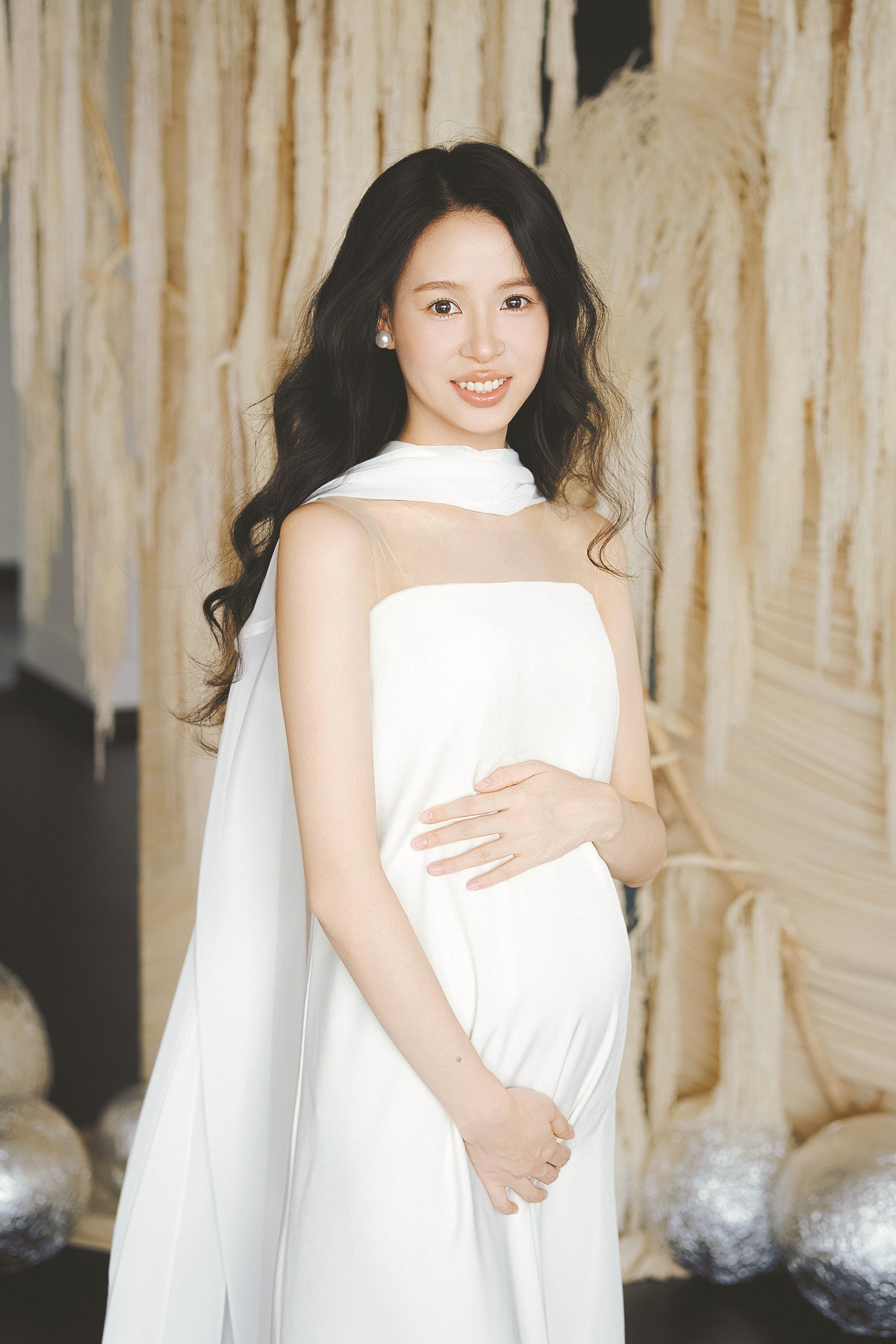 孕妈:DongMayMay/30岁/单位职员/孕33周 穿搭审美:明媚 “红色代表明艳和热情,是我的‘能量色’。正红色抹胸修身长裙搭配同色垂坠肩带,整体既明媚又有仪式感,我喜欢这样的女性柔美感。孕期的美妈们,最担心身材走形,总是焦虑要如何控制体重。希望宝爸们多夸夸她,带她拍拍美照,鼓励下她们吧!” 静待花开的白裙子