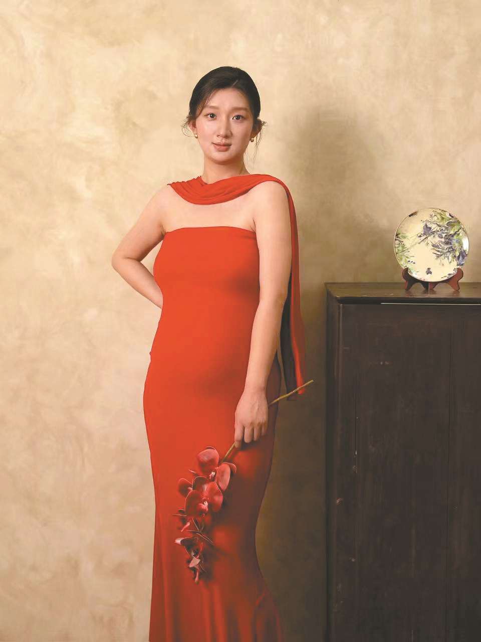 孕妈:张丹丹/28岁/医美机构老板/孕30周 穿搭审美:俏皮 “浅色系的服装能带来好心情,若不介意露手臂的话,露腹吊带就很适合孕期美妈,因为能衬显出孕肚的曲线。其次,撞色凉鞋、白色棒球帽、单肩包的配饰组合,可以提升孕妈穿搭的俏皮感。孕期是女性非常重要的时刻,为啥要刻意把肚子藏起来呢?每个阶段的女性身材变化,都值得去接纳!孕期的我同样热爱运动,游泳、普拉提、打网球,都在量力而行地体验。” 红色长裙充满能量