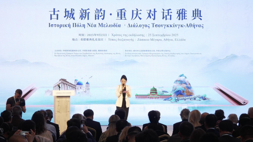 爱琴海畔,文明交响。当地时间9月25日上午,雅典扎皮翁宫内,以“古城新韵·重庆对话雅典”为主题的城市文明对话活动隆重举行。中希两国150余位政府、企业、高校和媒体代表围绕文明互鉴、城市更新、绿色转型、青年交流等议题展开深度对话,推动重庆和希腊文明交流互鉴走深走实,为共建“一带一路”高质量发展、迎接明年中希建立全面战略伙伴关系20周年注入新动力。 当地时间9月25日上午,“古城新韵·重庆对话雅典”活动在庄严的雅典扎皮翁宫举行 本次活动由中国国务院新闻办公室、中国驻希腊大使馆、雅典市政府共同主办,重庆市人民政府新闻办公室与中希文明互鉴中心承办,西部国际传播中心执行。 两大文明相互欣赏 追求彼此成就 中央精神文明办公室专职副主任胡凯红在开幕致辞中指出:“中国和希腊都拥有悠久历史和灿烂文化,两国友好关系源远流长、历久弥新,是相知相亲、互利共赢的战略伙伴。早在2000多年前,古丝绸之路就把两个国家连接在一起,东西方两大文明以‘和而不同’的胸怀相互欣赏,以‘美美与共’的追求彼此成就。”他希望以本次活动为起点,推动更多城市跨越地理界限、超越文化差异,在文明互鉴中寻找“最大公约数”,在造福人民中实现城市价值,让古城和古文明焕发新的生机活力。 中央精神文明办公室专职副主任胡凯红开幕致辞 雅典副市长尼科斯·基索格洛斯对活动的举办表示热烈祝贺。基索格洛斯表示,雅典与中国重庆同为历史文化名城、依山而建,傍水而兴,有很多共同点,雅典愿意与重庆展开深入对话,并期待进一步深化合作。 希中友好协会主席、前希腊驻华大使伊奥安尼斯·西奥法诺斯在致辞中深情回忆了他担任驻华大使的三年时光。他表示,中希同为历史悠久的文明古国,近年来,两国在诸多领域合作硕果累累。希中友好协会将始终致力于促进两国人民之间的友好交流,推动各领域交流与合作不断深化。 希中友好协会主席、前希腊驻华大使伊奥安尼斯·西奥法诺斯在活动中致辞 中国驻希腊大使馆公使衔参赞赖波表示,重庆与雅典作为代表城市,在考古保护、城市发展等领域开展交流,有望激发新的合作机遇,为两国关系注入新内涵。他鼓励更多的联合学术项目、青年交流项目发挥桥梁作用,增进两国人民友谊。 中国驻希腊大使馆公使衔参赞赖波致辞 一场跨越技术媒介 真实可贵的交流 在主旨演讲环节,重庆市委宣传部副部长、市文明办主任赵德明以《文明互鉴与城市精神共融》为题,向与会嘉宾生动分享了重庆作为中国乃至世界超大城市的发展历程。他从“源远流长:穿越历史的共鸣”“古城新生:拥抱时代的‘密码’”共赴未来:天涯比邻的‘双向奔赴’”三个维度,系统介绍了重庆的创新、开放、生态与文化传承实践。他指出,重庆正全面融入“一带一路”建设,努力打造内陆开放高地与山清水秀美丽之地,并向在场希腊嘉宾发出“在文化旅游上‘共赏’、在经贸产业上‘共赢’、在文明互鉴上‘共进’”的合作邀请。 重庆市委宣传部副部长、市委文明办主任赵德明发表主旨演讲 中希文明互鉴中心理事会主席克劳伊·巴拉的演讲,则从柏拉图笔下苏格拉底与斐德罗斯在伊利索斯河畔的对话展开,延伸到人工智能引发的思考。他指出,此次雅典与重庆的面对面交流,是跨越技术媒介、实现真实互动的珍贵实践。 中希文明互鉴中心希方理事会主席克劳伊·巴拉发表主旨演讲 雅典大学教授乔治·瓦武拉纳斯就古城可持续发展的文化维度分享观点;重庆市设计院总经理、总建筑师褚冬竹以重庆为例,剖析了山地半岛城市在空间机遇与文脉传承方面的探索与创新。 雅典大学教授乔治·瓦武拉纳斯作主旨分享 重庆市设计院总经理、总建筑师褚冬竹分享观点 中国城市更新做法 获希腊学者赞扬 作为活动看点,来自中希政府、学界、企业等领域约三十位代表,围绕“可持续发展智慧”“生态转型路径”和“青年交流合作”开展了三场平行圆桌对话,现场精彩纷呈。 姚瑶(左一)、蒋思维(左二)、艾正兵(左三)、吴辉(右三)、尼克斯·巴巴罗斯(右二)、克塞诺丰·穆撒斯(右一) 中国传媒大学城市文明研究院院长姚遥主持了首场“中希文明古城可持续发展智慧共鉴”对话。大足石刻研究院院长蒋思维分享了石窟艺术保护与城市现代化融合的“大足实践”;渝中区委常委、宣传部部长艾正兵介绍了母城渝中在城市更新中实现文化活态传承的“三重路径”;涪陵区委常委、宣传部部长吴辉则以白鹤梁水下博物馆为例,阐释了文化遗产原址保护与城市精神重塑的“中国方案”,让世界首座非潜水可到达的水下遗址博物馆的智慧之光闪耀爱琴海。雅典大学空间物理教授克塞诺丰·穆撒斯从地理和物理学的角度,分析了文化发展、城市物理布局和城市更新之间的内在逻辑。伊拉克利翁市市长尼克斯·巴巴罗斯也做了重要分享。 在“生态转型”对话环节,人民大学澄海全球发展与安全高等研究院教授周鑫宇表示,中国正在从绿色技术和融资的接受者,成为未来可能最重要的供给者。重庆建筑工程职业学院副校长陈依民展望了两地在产学研、人才的培养方面的深度合作。卡马泰罗市市长斯塔夫罗斯·齐尔帕斯重点介绍了城市可持续发展举措,包括慢行步道,针对老人、儿童的一些措施,强调了历史古城可持续发展的关
