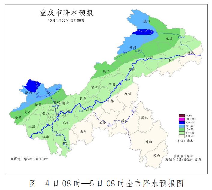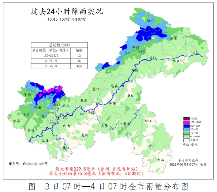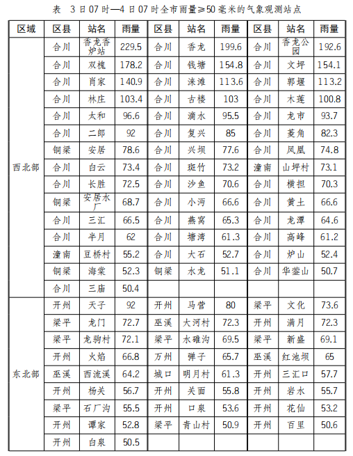 据重庆市气象台预计,10月4日,长江沿线以北地区小到中雨,局地大到暴雨(30~70毫米);叠加前期降雨影响,东北部和西北部部分地区地质灾害、中小河流洪水气象风险较高,注意防范。5—6日,大部地区多云到晴。 24 小时天气预报及风险提示 4日白天到夜间(4日08时—5日08时),长江沿线以北地区小到中雨,局地大到暴雨(30~70毫米),其余地区阴天到多云,有分散阵雨,气温16~31℃;中心城区阴天有阵雨,气温23~30℃。 48—72 小时天气预报 5日白天到夜间(5日08时—6日08时),大部地区多云到晴,局地有阵雨,气温16~34℃;中心城区多云间晴,气温24~33℃。 6日白天到夜间(6日08时—7日08时),各地多云到晴,气温17~35℃;中心城区多云间晴,气温24~34℃。 昨日天气实况 3日07时—4日07时,我市大部地区出现阵雨,西北部和东北部部分地区中到大雨,局地暴雨到大暴雨,合川的12个雨量站达大暴雨,潼南、合川、铜梁、梁平、万州、开州、城口、巫溪等8个区县的56个雨量站达暴雨,最大雨量229.5毫米(合川香龙香炉站),最大小时雨量75.8毫米(合川香龙,4日02时);其余地区小雨。气温 16~31℃。 编辑:蔡静 校审:廖雪源 总值班:严一格 |