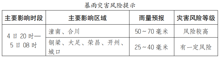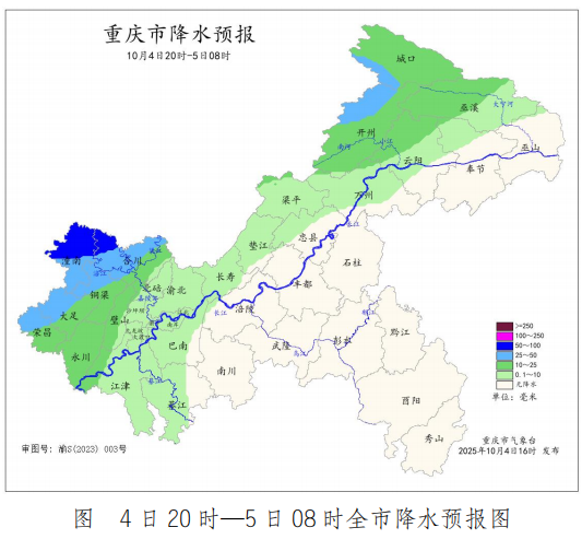重庆市气象台预计,10月4日夜间,长江沿线以北地区小到中雨,局地大到暴雨(30~70毫米);5—7日,大部地区多云到晴。 24 小时天气预报及风险提示 4日夜间到5日白天(4日20时—5日20时),长江沿线以北地区阵雨转多云,雨量小到中雨,局地大到暴雨(30~70 毫米),其余地区分散阵雨转多云,气温17~34℃;中心城区阵雨转多云,气温24~33℃。 48—72小时天气预报 5日夜间到6日白天(5日20时—6日20 时),各地多云到晴,气温17~35℃;中心城区晴间多云,气温24~34℃。 6日夜间到7日白天(6日20时—7日20时),大部地区多云到晴,局地有阵雨,气温18~35℃;中心城区多云间晴,气温25~33℃。 今日天气实况 4日07—16时,我市长江沿线以北地区阵雨,东北部局地大 雨,个别乡镇暴雨;城口、巫溪等2个县的5个雨量站达暴雨,最大雨量54.7毫米(城口新军村),最大小时雨量23.4毫米(城口北坡村,4日09时);其余地区阴天到多云,有分散阵雨。气温15~31℃。 编辑:蔡静 校审:廖雪源 总值班:严一格 |