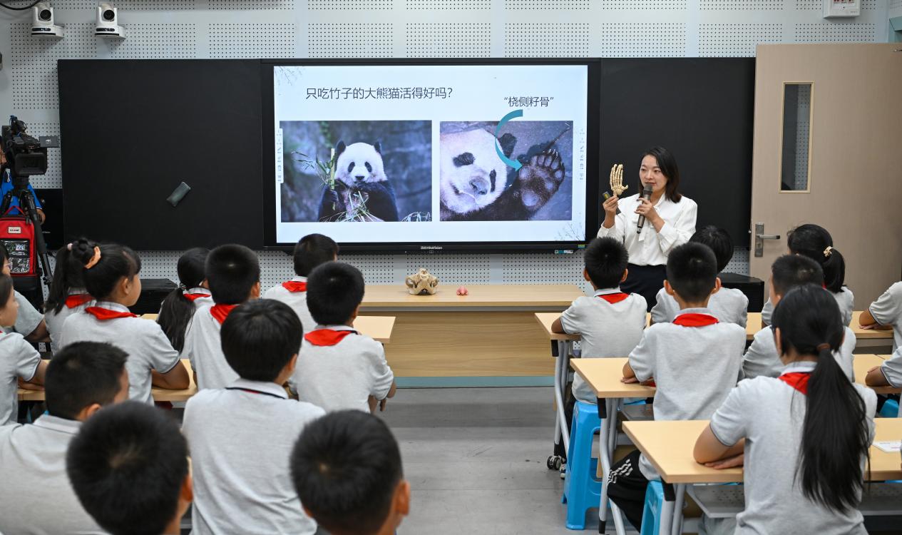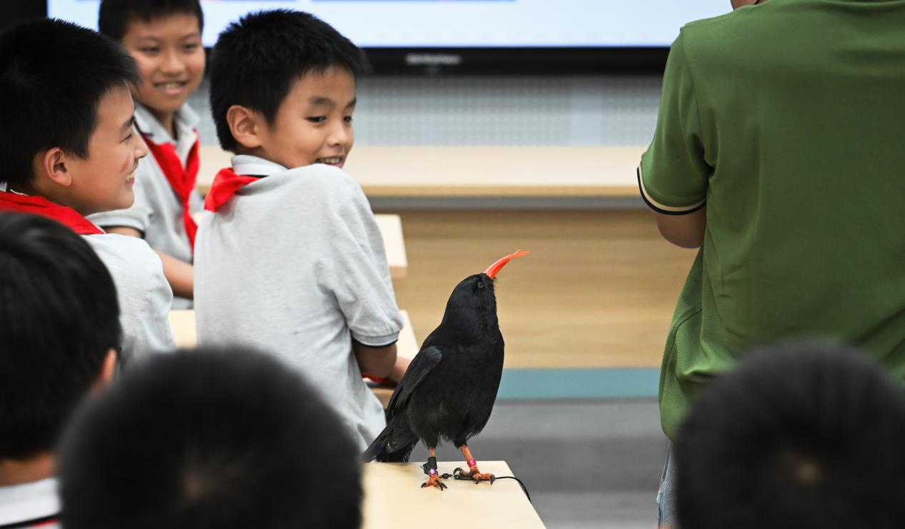 大熊猫的粪便为什么不臭?鹦鹉的寿命最长能有多少年?蓝孔雀和绿孔雀有什么区别……10月11日下午,重庆市沙坪坝区矿山坡小学校的教室里弥漫着别样的专注。重庆动物园动物科普老师们为孩子们讲授了一堂关于动物世界的秘密的课程。 大熊猫粪便里的秘密 11日下午,2025年渝港澳青少年自然探索“云端守候·爱护动物”公益行动“云捐赠·一元爱”走进沙坪坝区矿山坡小学校,开启一场知识与爱心交织的旅程。 “大熊猫的生活,几乎是整天除了吃,就是睡,偶尔玩耍。”课堂上,重庆动物园动物科普主管田小芳称,大熊猫吃的竹子多,可吸收并不好,只有17%左右能被利用,其余的都要排出体外。 “它每天可以拉便便40次左右。”田小芳话音刚落,同学们就惊得张大嘴:“这么多!”原来,大熊猫吃的竹子含有大量的纤维素,难以消化吸收。它的肠道相对较短,胃酸酸性不强,食物发酵不充分。因此,大熊猫的粪便中保留了大量未经充分消化的竹子纤维,这些纤维带有竹子的自然清香,使得粪便闻起来并不臭。 而且,大熊猫吃的竹子部位不同,粪便颜色也不一样。吃竹叶的时候,便是墨绿色;吃竹竿的时候,便是淡黄色。要是大熊猫生病了,会排黏液便。 “别看成年大熊猫长得那么壮,其实它们刚出生的时候,只有手掌长。”田小芳称,成年后,大熊猫的体重能达到110公斤以上。 田小芳为同学们现场展示了大熊猫幼崽模型。“这体重比例,也太大了。”同学们称,大熊猫出生后,简直是在“疯”长! “渝爱、奇三妹、四喜丸子都是重庆动物园的大明星……”课堂上,田小芳为同学们介绍了重庆动物园里众多明星大熊猫,以及它们的趣事,引得同学们开心一笑。 鹦鹉的寿命 “乌鸦是个聪明的家伙,智商在鸟类中也挺高。”课堂上,重庆动物园鸟类保育员王鹏带来了两只鸟——斑鸠和乌鸦,让同学们大饱眼福。 王鹏称,乌鸦是动物里,除了猩猩以外,最会使用简单工具的动物。别看它不起眼,其中有一种叫渡鸦的乌鸦,它可以拿棍子去掏树洞里面的昆虫吃。还有一种叫寒鸦的乌鸦,为了吃核桃,它也很会想办法,遇上边上有马路的时候,会将核桃叼到马路上,让车子帮忙碾压,再在没有车辆或者出现人行绿灯的时候,上前食用。 乌鸦的记忆力也超棒。在野外,为了冬天能吃到食物,它会把平日多余的食物藏到树洞里、石缝里面,藏匿的地方能有20-30处,每一处都能准确记住。 “绿孔雀是极度濒危物种,是原生的中国境内珍稀鸟类,也是国家一级重点保护野生动物。目前绿孔雀仅在云南部分区域有野生种群分布。”讲完乌鸦后,王鹏给同学们讲起了绿孔雀和蓝孔雀的区分。 王鹏介绍,蓝孔雀的冠羽像一把展开的小扇子,绿孔雀的冠羽呈簇状,会一直耸立在头顶;它们脸颊颜色也有不同,蓝孔雀的脸颊是白色的,绿孔雀的脸颊是亮丽的橘黄色;颈部羽毛也有区别,蓝孔雀的颈部是蓝色的丝绢状羽毛,绿孔雀的颈部是金绿色,像鱼鳞一样,一片一片。 最后,王鹏为同学们介绍了鹦鹉。当讲到鹦鹉年龄时,同学们铆足了劲猜:“50岁。”王鹏称,一般大型鹦鹉的寿命要比小型鹦鹉寿命长,其中大型金刚鹦鹉平均寿命有50~60年。圈养条件下,有一只亚马逊鹦鹉“詹密”活了104岁。 如果到动物园,看到大型金刚鹦鹉的时候,一定要远离。王鹏介绍,这种鹦鹉都有坚硬的喙,能轻松敲开如核桃一样的坚果,就连笼子里的细条铁丝也会被它们轻易折断,咬断人的手指更是不用费力。 王鹏还告诉同学们,如果路上遇上落地鸟儿,一定不要轻易去捡拾。要是鸟儿来到家里,打开窗户,让它们飞出去就好。 把学到的知识分享给家人朋友 让更多人了解野生动物,去保护野生动物 课后,同学们还拿出一元钱,参与“云捐赠·一元爱”公益活动,让保护动物的爱心,变成了一次线下的善举。 活动结束后,同学们表示,“听了动物园科普老师带来的动物世界讲座,了解到了每一个物种都是生态系统中不可或缺的一环。保护动物,就是守护我们共同的家园。”“这堂课让我知道了大熊猫的生活习惯、食性、生存现状等。我要将学习到的知识分享给家人朋友,让更多人了解野生动物,去保护野生动物,关注它们。”“我也想成为一名志愿者,为保护野生动物出一份力。” “在课堂上,我们给同学们带来了大熊猫的进化历史,以及大熊猫独特的食性、生活习性,还有重庆动物园的网红大熊猫。”田小芳表示,让自己特别感动的是,同学们在对于大熊猫的保护方面,能有自己的见解,希望通过这样的课堂,让更多人了解自然,关注自然,保护自然。 上游新闻记者 徐勤 图片 张锦辉 来源 重庆国际新闻中心 编辑:明爽 校审:罗再芳 总值班:丁香乐 |