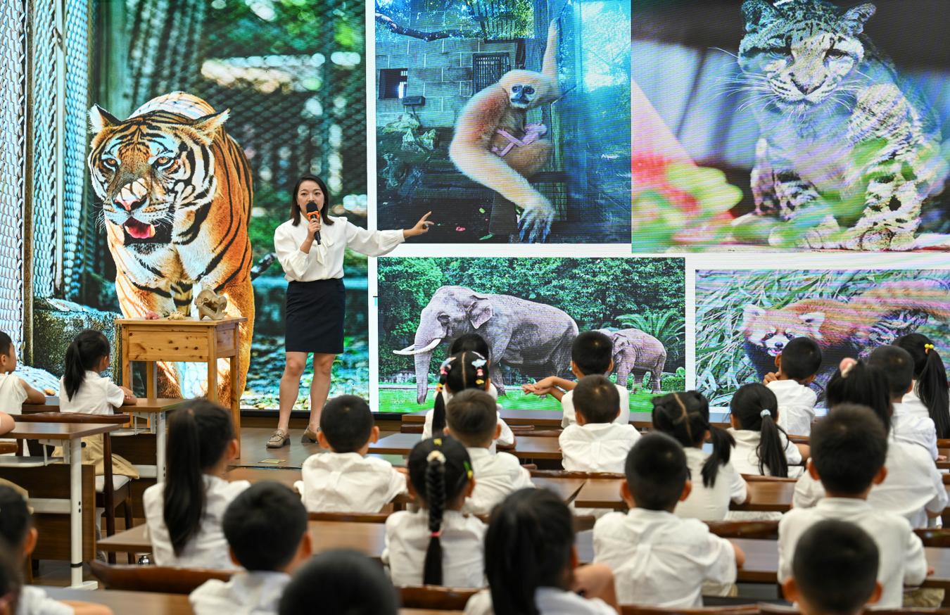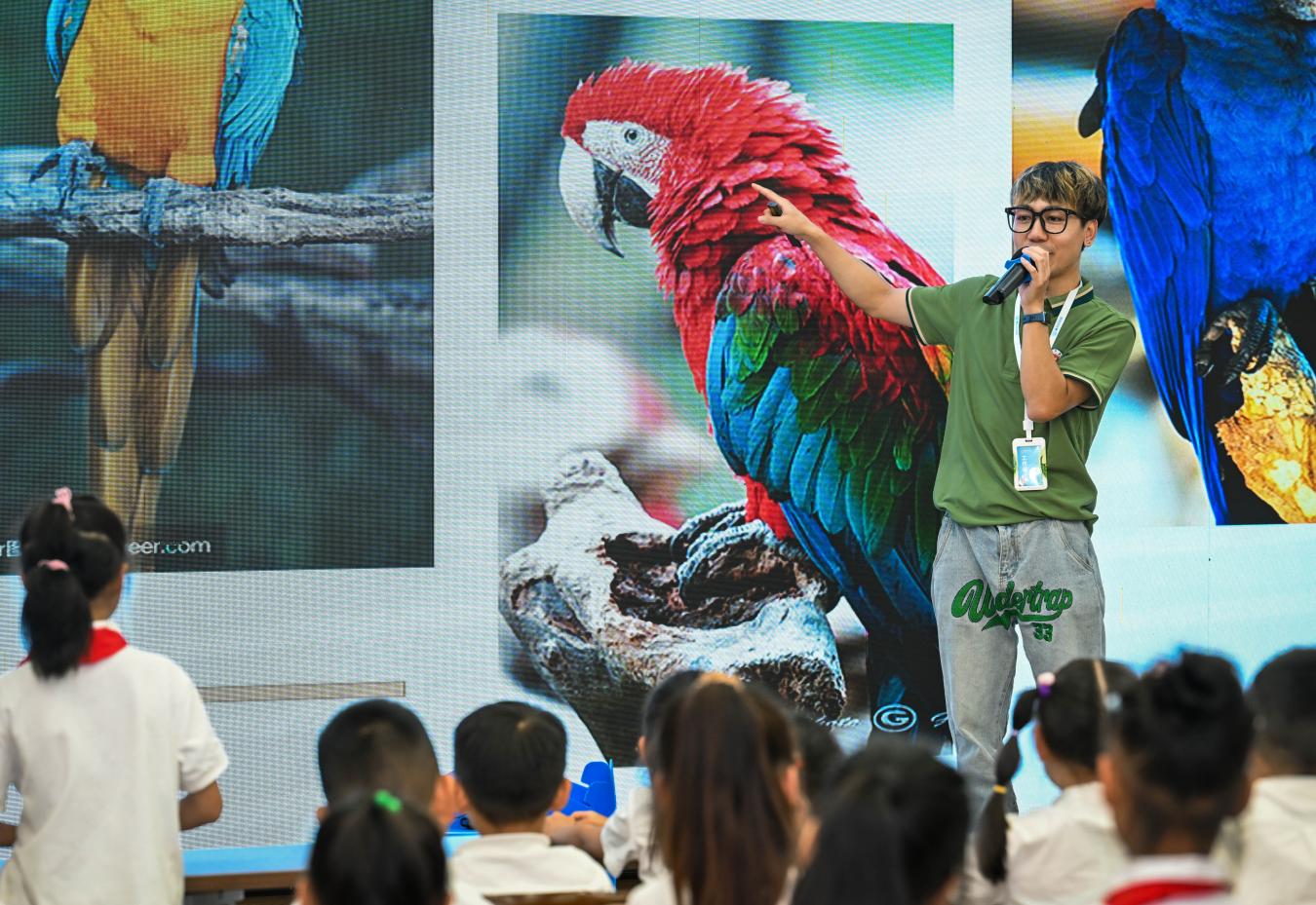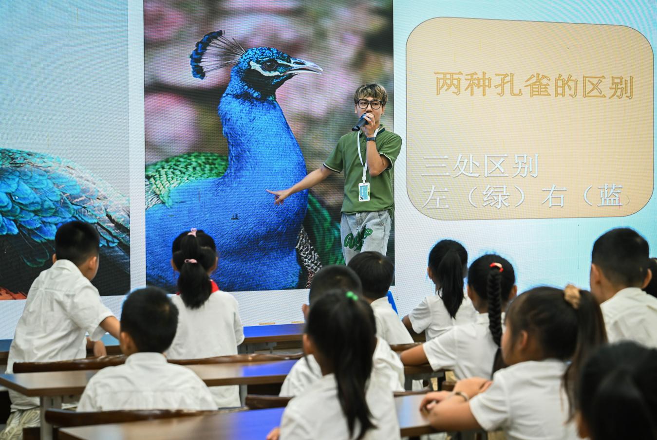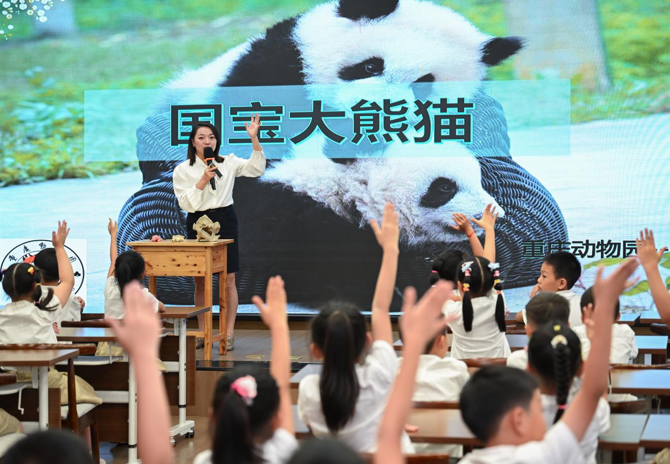 “这是渝可!”“这是渝爱!”“这是奇三妹!”“这是良月才生的宝宝!”当动物科普老师放出重庆动物园大熊猫的照片时,重庆市沙坪坝区歌乐山小学的课堂上,“哇”声不断,一波高过一波。 10月11日上午,2025年渝港澳青少年自然探索“云端守候·爱护动物”公益行动“云捐赠·一元爱”活动走进重庆市沙坪坝区歌乐山小学校。 本次活动以“探索动物世界·启迪科学梦想”为主题,通过科普讲座、实物展示、互动体验与公益倡议等形式,引导广大青少年关注动物保护、热爱自然环境、培养科学素养与社会责任感。 四喜丸子已分家 游客再无缘见它们“围炉煮茶” “有谁知道,重庆动物园的‘四喜丸子’指的什么?”课堂上,重庆动物园动物科普主管田小芳的提问,顿时吸引了同学们的注意。四喜丸子是两对双胞胎大熊猫双双、重重、喜喜、庆庆,它们在2019年6月23日出生,通过网上征名得来,寓意双重喜庆。 出生后,四只大熊猫一起生活,时常围坐在一张桌上“撸串”,有点“围炉煮茶”或“搓麻将”的感觉。 “大熊猫属独居动物。”田小芳介绍,别看它们小时候住在一起,五六岁成年后,会分家,独自生活。目前,四只大熊猫已经成年,双双领地意识变强,已经被分开单独饲养。“它们小院的座椅,已经由四把变成了三把。”田小芳称,“四喜丸子”坐一桌用餐的画面再不会出现在游客的视线里。 “成年大熊猫体重能达到110公斤左右,只吃竹子能活得好吗?”田小芳称,大熊猫的“萌点”之一就在于它吃竹子,一天能吃掉15~40公斤左右。 大熊猫头脑圆圆滚滚的很可爱,附着了发达的咬肌,便于咀嚼竹子。而大熊猫的臼齿非常大而且平,便于碾磨竹子。而且大熊猫吃竹子还很挑剔。 在野外,它会选择最有营养的竹子种类和部分。比如有竹笋的时候,它会优先吃竹笋;没有竹笋的时候,它会吃竹叶和竹竿。竹叶和竹竿也是挑选一年生、刚长出来那种,很新鲜、很嫩、很有营养的部分。 目前,重庆动物园拥有大熊猫数量24只,是城市动物园中拥有大熊猫数量最多的动物园。 课堂上,田小芳还为同学们介绍了长臂猿、云豹、小熊猫、浣熊等动物。 乌鸦进课堂 用实力证明自己有多牛 “都说天下的乌鸦一般黑,真是这样的吗?”课堂上,重庆动物园鸟类保育员王鹏带来一只乌鸦。刚打开鸟笼,它便飞到了王鹏肩上,新奇地打量着课堂上的孩子们。 “老师,它好漂亮,喙还是红色的!”王鹏告诉同学们,他肩上的乌鸦是红嘴山鸦,生活在高海拔地区,非常聪明,经过驯化它已经会说“你好”“乖乖”。给它喂小虫子、鸡蛋黄,吃不完的时候,它会藏在笼子的各个角落,用树叶或石头它把盖住,不让他发现。别看它眼睛小,挺会察言观色,还会揣摩人的心思,就是一个“机灵鬼”。 “这真是一只乌鸦?咋这么聪明!”王鹏介绍,乌鸦是鸦科鸦属鸟类的通称,它的家族非常庞大。截至2023年,综合分类信息系统(ITIS)中鸦属包括46个种,57个亚种。其中,渡鸦是乌鸦中个体最大的种类,体长可达70厘米,羽毛黑色,带有蓝紫色或蓝绿色金属光泽;寒鸦是小型乌鸦,体长约30~35厘米,胸腹白色并具白色颈圈,余部为黑色。还有达乌里寒鸦、白颈鸦等等。 有人说乌鸦是不祥的鸟类,王鹏在课堂上解释称,是因为有一部分乌鸦有食腐的习性,偶尔在陆地上会遇到它们去吃一些死掉的动物。 课堂上,王鹏还为同学们介绍了孔雀、鹦鹉等多种鸟类。 让同学们将课本和自然连起来 点燃他们对动物和自然的好奇心 下课后,同学们纷纷表示:自己收获到了许多保护动物的知识。比如,知道了去看大熊猫的时候,不能高声叫喊,不要去打搅它生活,也不能给大熊猫丢零食。也有同学称,这堂课,让自己记住了一只红嘴的乌鸦,还有它发出的奇特声音!还有同学称,“动物世界好有意思,也很有趣。课堂上,知道了鸡的寿命约有8年,孔雀能活12岁左右!” 重庆市沙坪坝区歌乐山小学校德育处副主任、少先队大队辅导员黄静表示,希望通过类似的活动,让同学们将课本和自然连起来,点燃他们对动物和自然的好奇心,学会尊重生命、爱护环境,把环保变成日常习惯,在活动中锻炼观察、表达和合作能力。 王鹏称,这次带着活体动物走进校园,与小朋友进行深入的交流互动,主要是让同学们了解自然环境下和动物园环境下的鸟类保护。希望通过这样的课堂,能让同学们记住更多有关动物保护的知识,燃起对动物保护和探索的欲望。 活动结束前,“云端守候·爱护动物”公益行动的重要组成部分——“云捐赠·一元爱”活动也开启,同学们纷纷拿出一元钱,投入了实体捐赠箱,为动物保护和喂养,献出自己的爱心。 上游新闻记者 徐勤 图片 张锦辉 来源 重庆国际新闻中心 编辑:明爽 校审:罗再芳 总值班:丁香乐 |