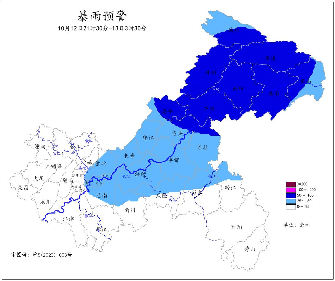 10月12日21时,重庆市气象台发布暴雨黄色预警,预计10月12日21:30—13日3:30:忠县、梁平、万州、开州、城口、云阳、奉节、巫溪、巫山、石柱等10个区县将出现50~80毫米降水,渝中、沙坪坝、大渡口、江北、九龙坡、南岸、两江新区、渝北、北碚、巴南、南川、长寿、垫江、涪陵、丰都、武隆、彭水、黔江等18个区县将出现25~50毫米降水,上述地区局地伴有6~8级雷雨大风。 编辑:明爽 校审:罗再芳 总值班:严一格 |