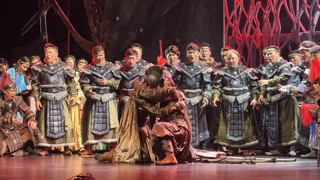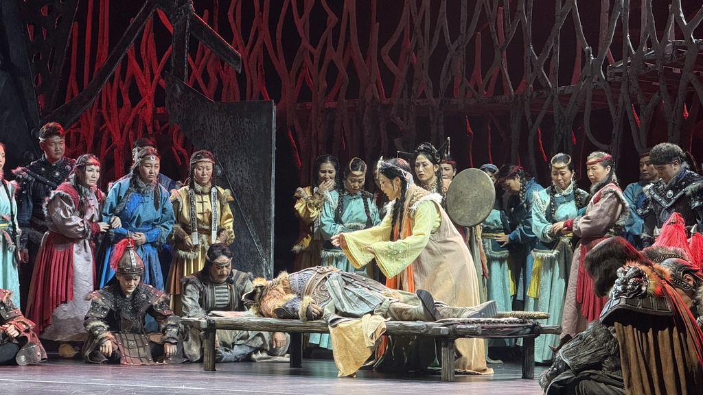 “这里没有星光,这里没有希望,只有死亡与恐惧,英雄何时才能降临,蟒古斯何时才能被消灭……”随着一曲震撼人心的合唱响起,10月14日晚,第十八届文华奖参评剧目、由内蒙古艺术剧院精心打造的原创民族歌剧《江格尔》在重庆国泰艺术中心上演,为山城观众呈现了一场融合民族史诗气魄与现代歌剧魅力的艺术盛宴。 据了解,民族歌剧《江格尔》以中国三大史诗之一《江格尔》为创作蓝本,讲述了江格尔在众人的呵护下成长,带领民众齐心协力战胜侵犯之敌蟒古斯,以坚定的信念和无畏的担当,誓死捍卫美好家园的故事。主创团队以深厚的艺术功底和国际化的视野,共同致力于将古老史诗转化为符合当代审美的高品质歌剧。 该剧以多元艺术表现手段呈现,音乐创作上融合了内蒙古地域元素长调、呼麦等艺术形式,巧妙借用内蒙古北疆文化符号谱写宏大壮丽的英雄史诗。史诗厚重感的舞台布景、富有民族韵味的服饰道具、气势恢宏的群像场面,让江格尔与十二雄狮的传奇故事在紧凑的时空内迸发更强的戏剧张力,令观众更沉浸于跌宕起伏的史诗叙事中。 演出当晚,当蒙古族英雄史诗《江格尔》的旋律在剧场中响起,伴随着长调的悠扬与呼麦的苍劲,仿佛将观众带入了古老的“本巴国”。舞台上,英雄群像栩栩如生,《江格尔》以独特的艺术形式,为民族史诗所蕴含的中华优秀传统文化注入了新的活力。 在艺术呈现上,该剧完成了一场传统史诗的现代升华。音乐上,创新运用“音乐肖像”手法为角色量身定制主题,实现“声腔即性格”;舞蹈上,融入萨吾尔登等传统舞姿,以独具民族风情的肢体语汇强化戏剧张力;舞美上,突破具象框架,通过解构与意象化的视觉装置,在虚实交错间尽显北疆特色,为古老史诗开辟了广阔的现代解读空间。 民族歌剧《江格尔》自2023年首演以来便深受大众喜爱,也得到了众多专家的一致好评。不少专家认为,《江格尔》是近几年少见的少数民族题材的史诗性大歌剧,它具有很强的历史震撼力,而且有很多民族的、历史的印记以及神话传说的元素。无论从人物塑造,从抒情的角度还是戏剧性的表现上,都比其他类型的歌剧要深刻。 在14日晚的演出现场,不少观众也给予极高的评价。观众李芃宣说,现场体验特别震撼,尤其是内蒙古的民族风格,让她特别喜爱。通过这次演出,她得以深入了解同胞的风俗习惯,并且在服饰、化妆和道具等方面,都能感受到浓郁的民族文化色彩。 王琪琪是出生在重庆的内蒙古人,这次听说有内蒙古的剧团来重庆演出,便来观看了这部民族歌剧,感受非常亲切。王琪琪说,这部歌剧最吸引她的,是传统服饰的精彩展现。其次,这部剧的演出不仅融合了现代艺术的高低音技巧,还巧妙地融入了独特的民族唱法,相较于纯粹的传统基础演出,这样的表演更具吸引力。 据了解,民族歌剧《江格尔》还将于10月15日晚上7时30分继续在重庆国泰艺术中心上演,戏迷们可通过“重庆国泰艺术中心”小程序购票观看,亲临现场感受这部歌剧的艺术魅力。 原标题:十四艺节 | 以歌剧续写英雄传奇 民族歌剧《江格尔》在渝上演 编辑:戴林 校审:罗再芳 总值班:周圆 |