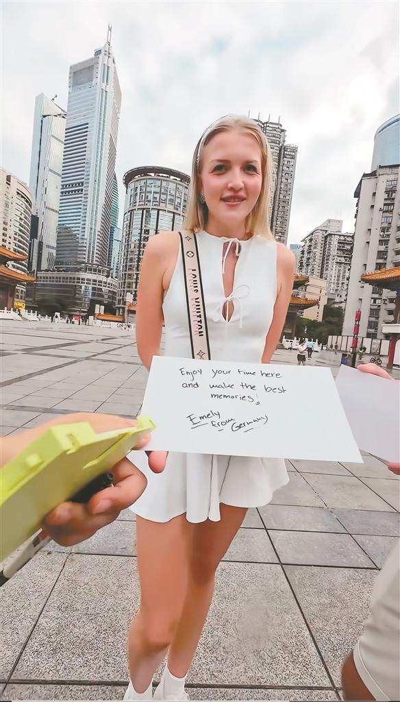 ▲比利时留学生 王先生清楚地记得,那天他们在魁星楼附近相遇。“他们中文不算流利,但很努力地表达。”王先生说,“其中一个男孩还用中文对我说‘你真的太好了’。” 这群深爱中国文化的年轻人,不仅欣然接受了拍摄,还现场展示了太极拳。 小故事3 好吃街的“方言课堂” 拍摄间隙,王先生有时会化身“文化传递者”,用简单的互动拉近与外国游客的距离。 有次拍摄中,他偶遇两位刚在好吃街吃完炸蝎子的法国人。交流中,王先生顺势当起老师,教他们说中文的“很高兴见到你”“谢谢”“对不起”和重庆方言“要得”。 作为回礼,两位法国朋友也拿起相机,为他记录下这难忘的瞬间。 小故事4 魁星楼“误认”奇缘 一次“认错人”,让王先生与法国人本杰明和本杰明的儿子成了朋友。 “我在魁星楼远远看到一位外国男士,以为是前几天拍过的游客,上前打招呼才发现认错人了。”王先生解释道,“不过这个美丽的错误反而让我们聊得更开心。” 本杰明父子俩坦言,他们很喜欢重庆的火锅,惊叹于重庆的摩天大楼和热闹。临别时,本杰明将这张带有陌生人祝福的照片收进自己的随身小包里。 希望成为山城“文化向导” 传递“漂流相纸”的同时,王先生还有一个坚定的“导游梦”。“我想带外国游客了解重庆深厚的人文历史,但现在讲解时总找不到通俗的词汇,担心他们听不懂。”为此,他计划收集更详细的资料,学习更易懂的英语讲解方式,希望以“一日导游”的形式,带外国游客体验地道美食、打卡特色景点,全方位展现重庆的自然风光、历史底蕴与人文温度。 “用镜头记录瞬间,用照片传递温度,愿这份美好能在时光里生根,成为你随时翻阅的温暖印记。”这是王先生每个视频结尾的寄语,也是他坚持这份事业的初心。他希望未来能将作品发布到Instagram、TikTok等平台,让更多外国友人看见并爱上重庆的美。 采访最后,王先生还说,这份用镜头传递温暖、用相纸连接世界的事业,他会一直坚持下去,“哪怕只是一张照片、一段留言,也可能成为他人繁忙生活里的一束微光,或是一段深厚跨国友谊的起点。” 网友评论 很温暖,请保持传递 @爱生活爱明天:正在学英语,看你的视频太治愈了。 @李白喝酒不吃肉:非常感谢!你做的事情十分有意义,这会让外国游客加深中国人热情友善的印象! @X-man Jayne:保持传递,太温暖了。 @缘来如此:今天看了你这个视频,觉得你这个行为非常有意义,让世界爱上中国。 @Stony:谢谢博主向这么多外国游客展示了中国人美好的一面。 重庆晚报-厢遇首席记者 王薇 实习生 赵欣怡 王一钧(受访者供图) 编辑:戴林 校审:罗再芳 总值班:周圆 |