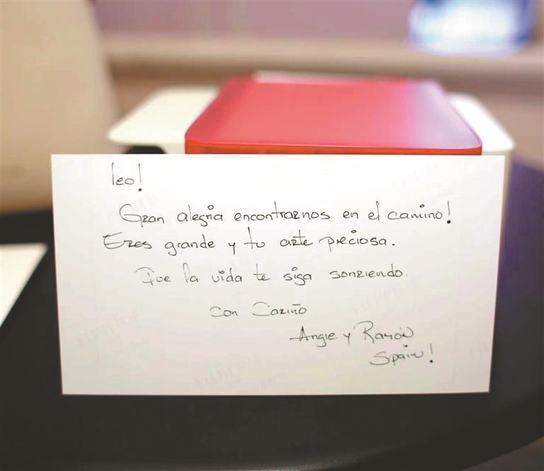 ▲西班牙夫妇写在相纸背后的留言 “起初,他们大多会拒绝,但经过真诚沟通,最终都欣然答应。”王先生说,当这些外国游客接过那张写有留言的相纸时,脸上瞬间绽放的惊喜与感动,直击人心。 这份持续的温暖,汇集了十万点赞与近百万浏览量。 小故事1 鲁祖庙的“美丽误会” 鲁祖庙的街头,曾上演过一段因语言不通而引发的温馨插曲。王先生回忆道,当时他遇到一对热情的西班牙夫妇,他用手机翻译软件说明拍摄意图,却让夫妇俩误以为照片背后的祝福是他专门写给二人的。解释清楚后,夫妇俩仍觉感动,认真地以西班牙语写下:“Leo!你很了不起,艺术很珍贵,愿美好的生活伴随着你,有缘再见。” 小故事2 留学生的“手写心意” “祝你跟你家人每天都很幸福。道行之而成。”这句笔迹稚嫩却真挚的中文祝福,来自一群在沈阳大学读书的比利时留学生。