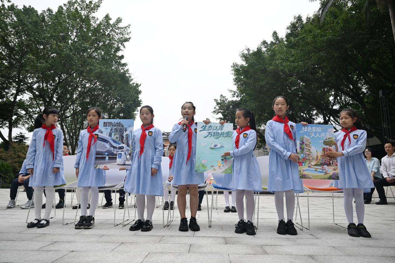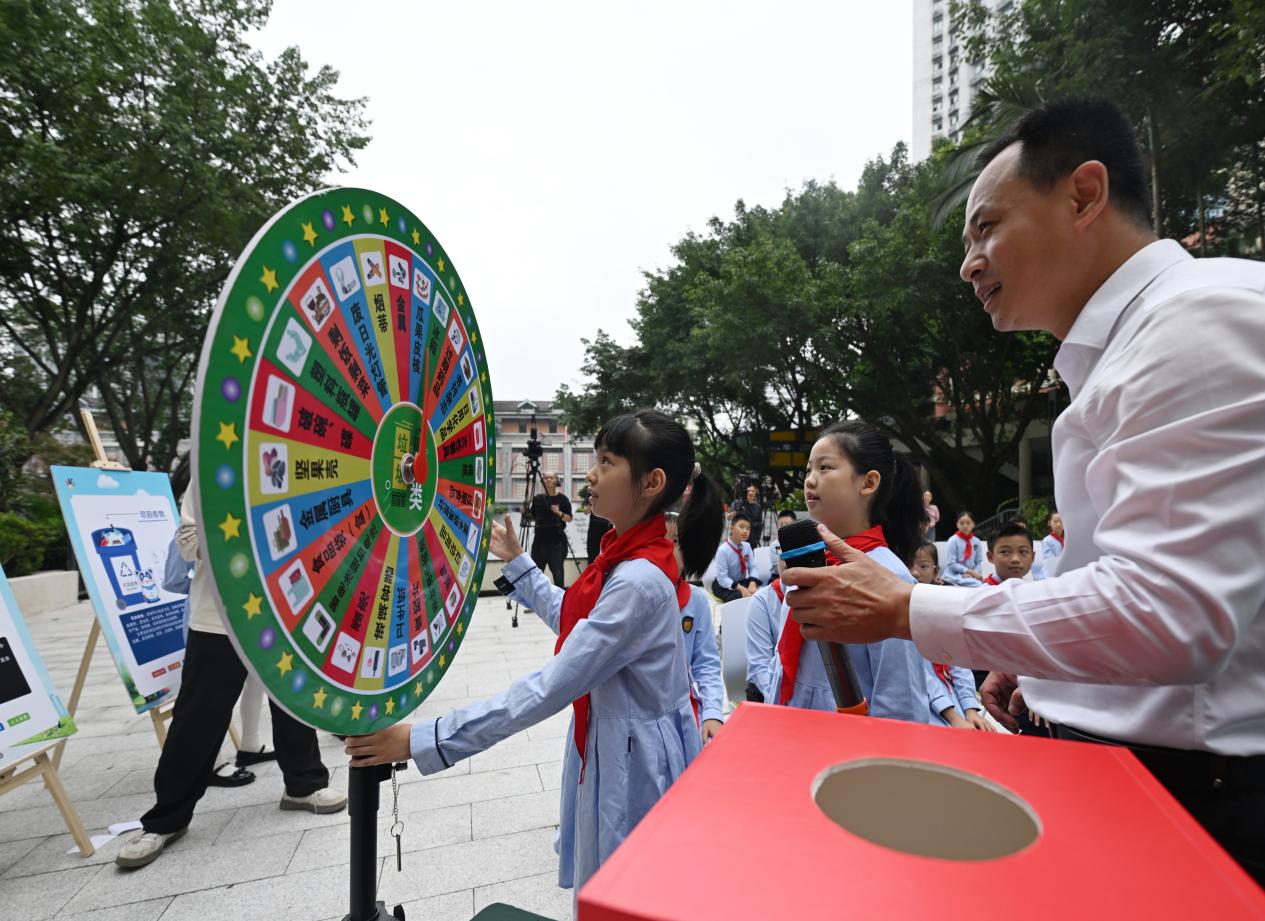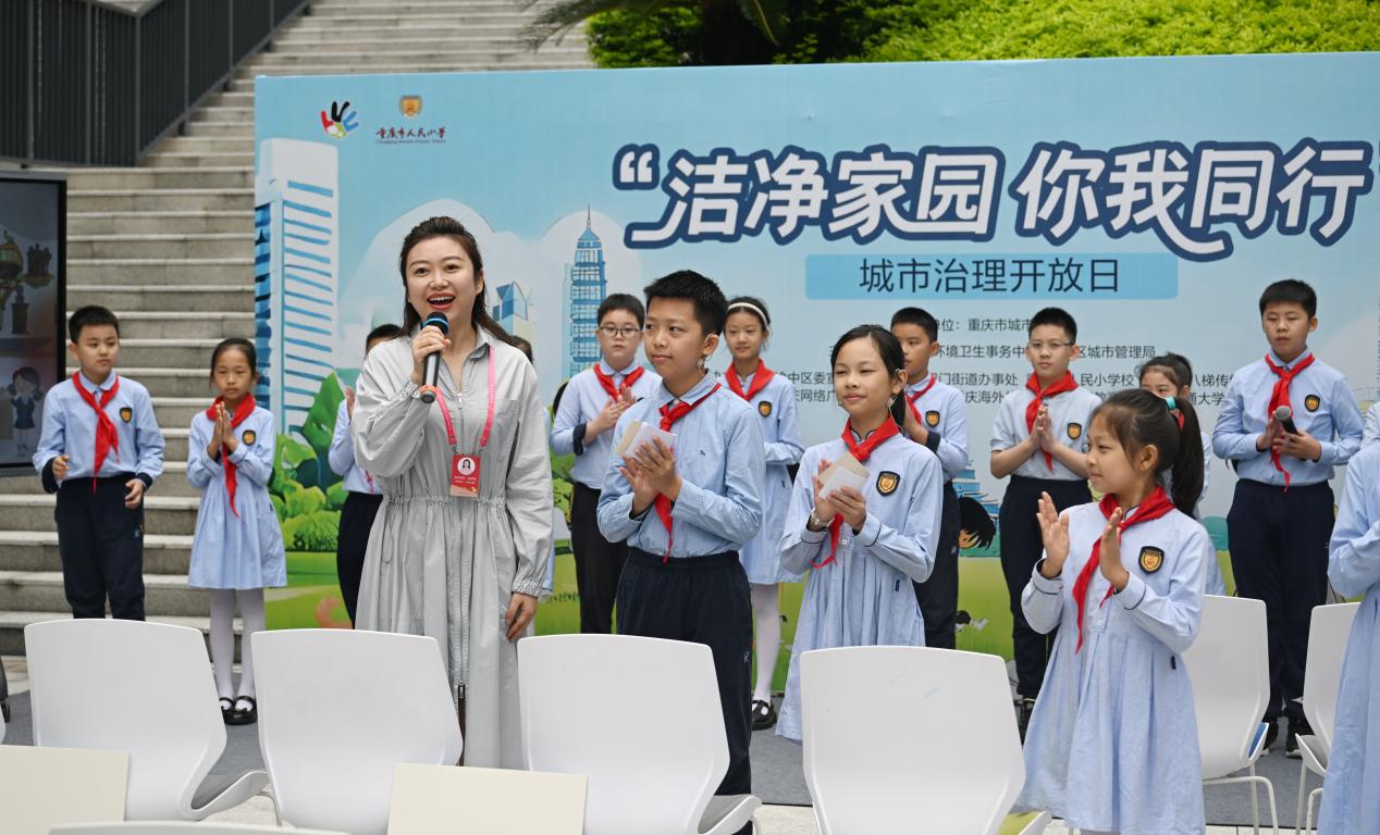 “人民城市人民建,你我都是小模范!”“人民城市为人民,山城明天更迷人!”10月16日,在重庆市人民小学校园里,该校学生用稚嫩的声音朗诵着一首《山城环保拍手歌》,这是该校“洁净家园·你我同行”主题班会活动中的一幕。本次班会中,孩子们还通过垃圾分类数据播报、“垃圾分类大挑战”游戏、展示环保倡议手绘海报等环节,展示作为城市小主人,要为它的洁净与美丽贡献力量的决心。