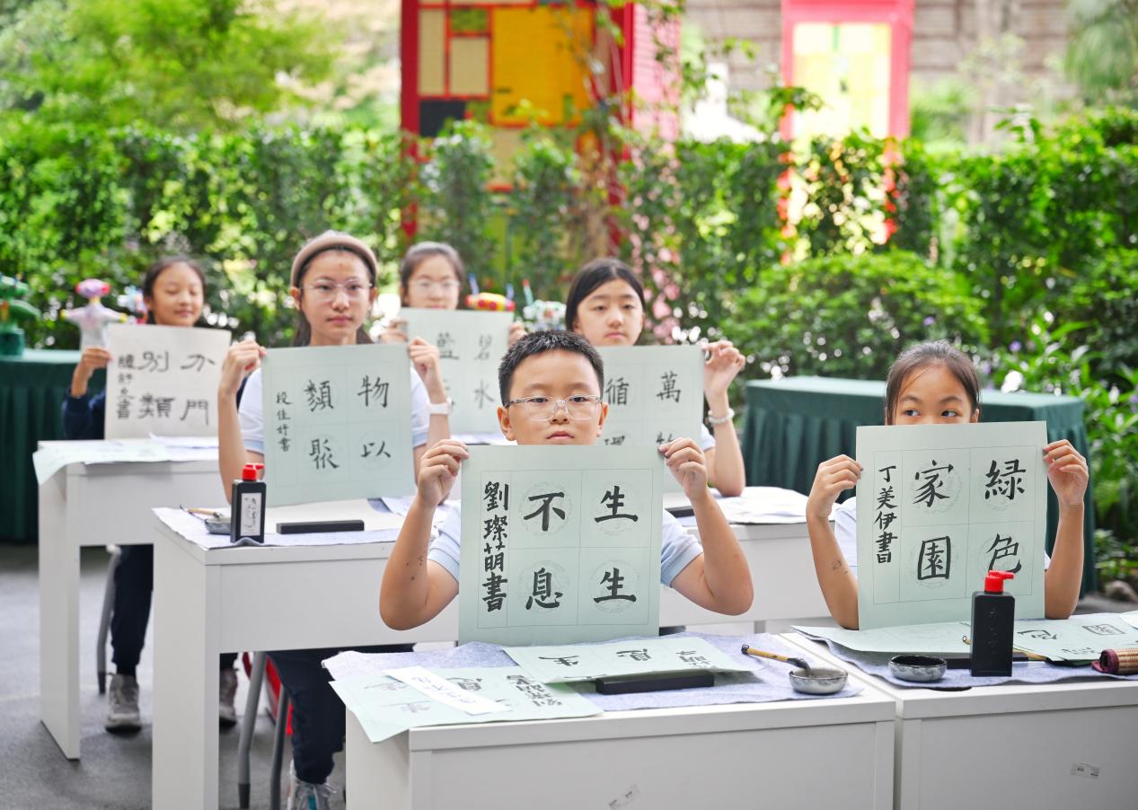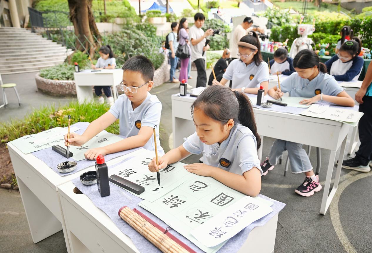 据了解,这次主题班会活动是“洁净家园·你我同行”城市开放日主题活动的一部分。在重庆市人民小学的分会场内,除了主题班会,学生还在现场展示了自己创作的旧物改造手工作品,并讲解了其创作理念;现场还设有“书法展示区”,由郑祥军书法老师现场教导学生书写“洁净家园·你我同行”主题作品。 “数据调查小队”播报:生活垃圾中藏着“宝贝” “大家有没有想过,在美丽的山城重庆,我们每天究竟会制造多少垃圾?”班会活动一开场,小主持人的提问引起了大家的深思。 很快,班会里的“数据调查小队”成员公布答案:“我们发现,重庆每天产生的生活垃圾大约是1.5万吨,如果用载重10吨的大卡车来运送,需要足足1500辆!”