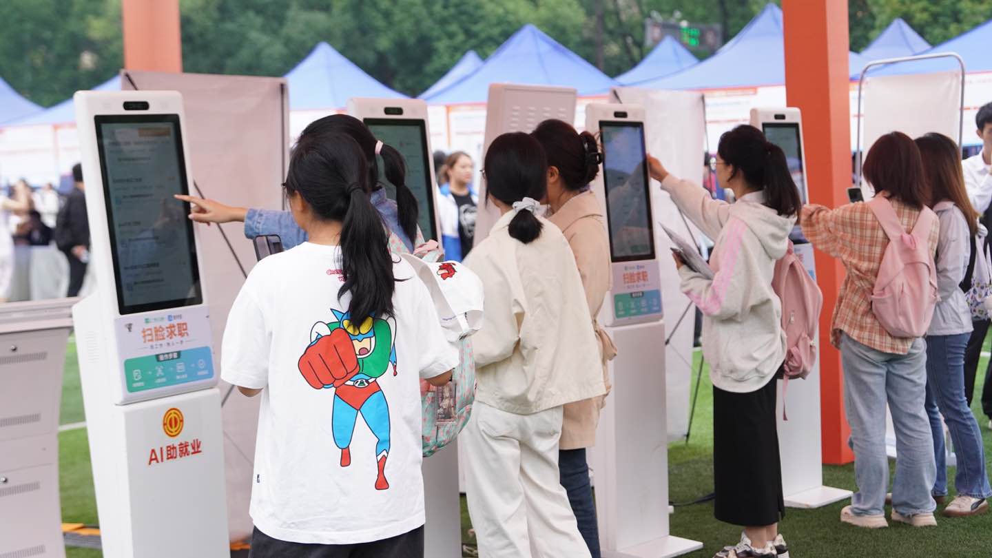 (配图:活动现场) AI赋能专区引领求职新风向 活动现场的AI赋能专区成为最大亮点,吸引了众多学子前来体验。专区里配备了智慧就业一体机、就业服务一体机、简历打印一体机、面试一体机等多款智能硬件设备。提供从职业规划到能力评估、简历优化、面试辅导,再到岗位匹配,甚至创业指导的一整套服务,覆盖了求职就业的各个环节,形成了全链条的服务体系。