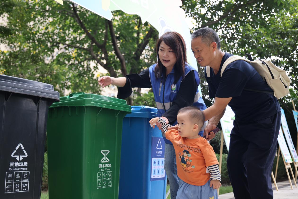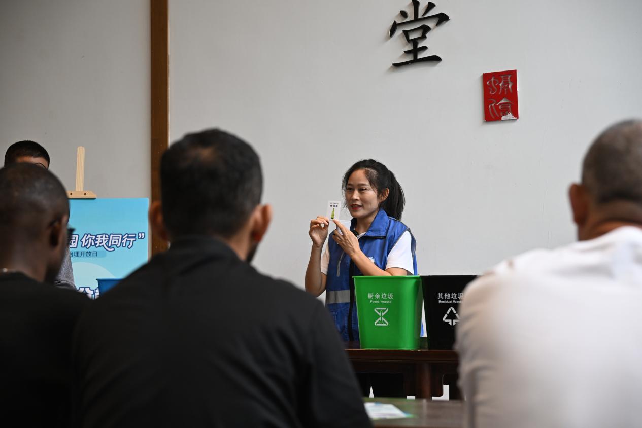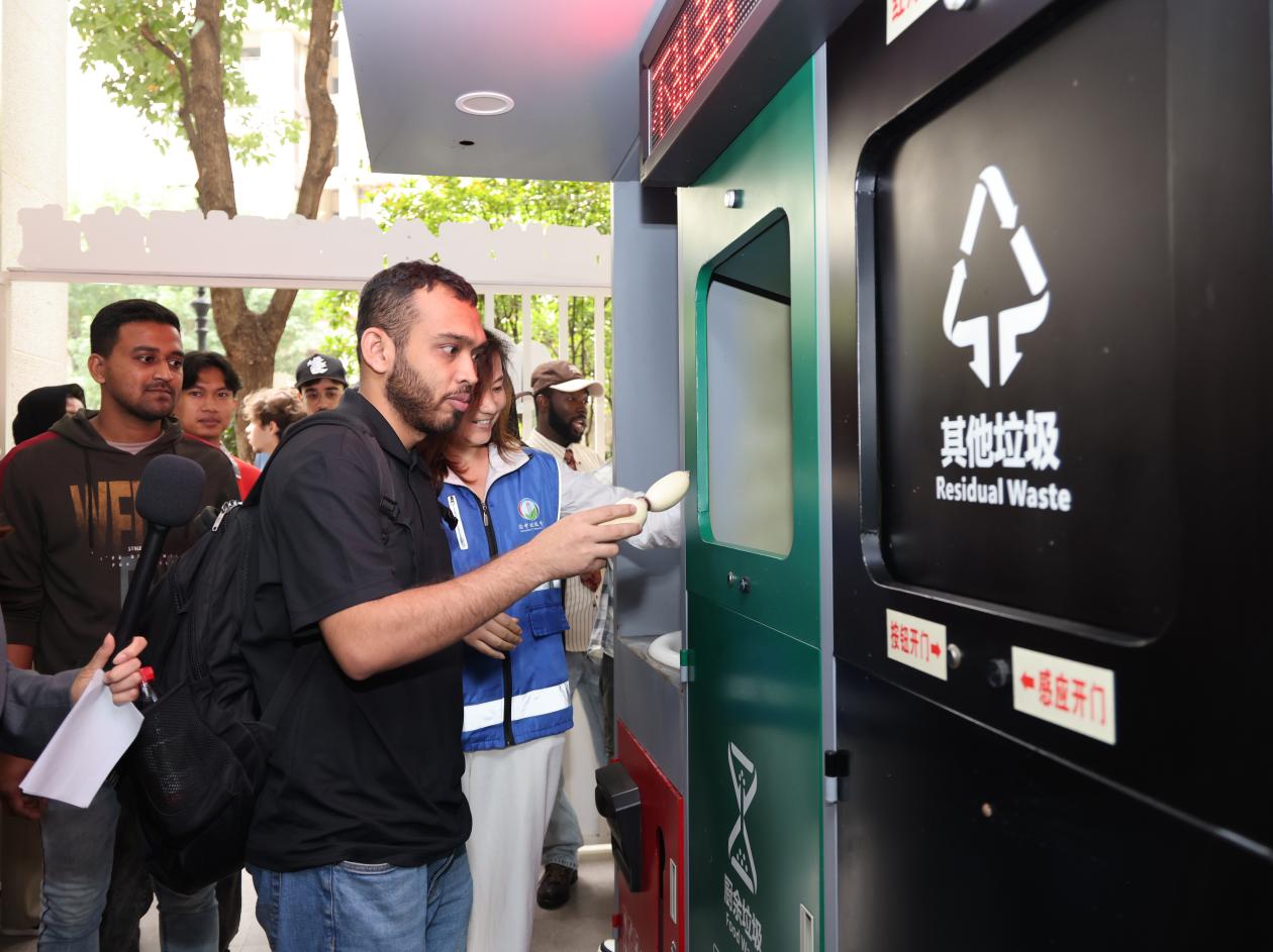 “之前总把骨头混在一起丢,今天才知道差别这么大!”居民李阿姨听完讲解,拿起桌上的垃圾分类手册翻个不停,“回家得跟老伴儿好好说说,以后可不能弄错了。” 实践体验垃圾分类 留学生主动当“推广大使” 理论课堂旁边,实践体验区的展板吸引不少留学生的注意。智慧分类垃圾箱前更是排起长队,蓝色可回收物、绿色厨余垃圾、红色有害垃圾、黑色其他垃圾四类垃圾桶依次摆放,留学生们拿起塑料瓶、菜叶、废旧电池等模拟垃圾道具,沉浸式体验垃圾分类。