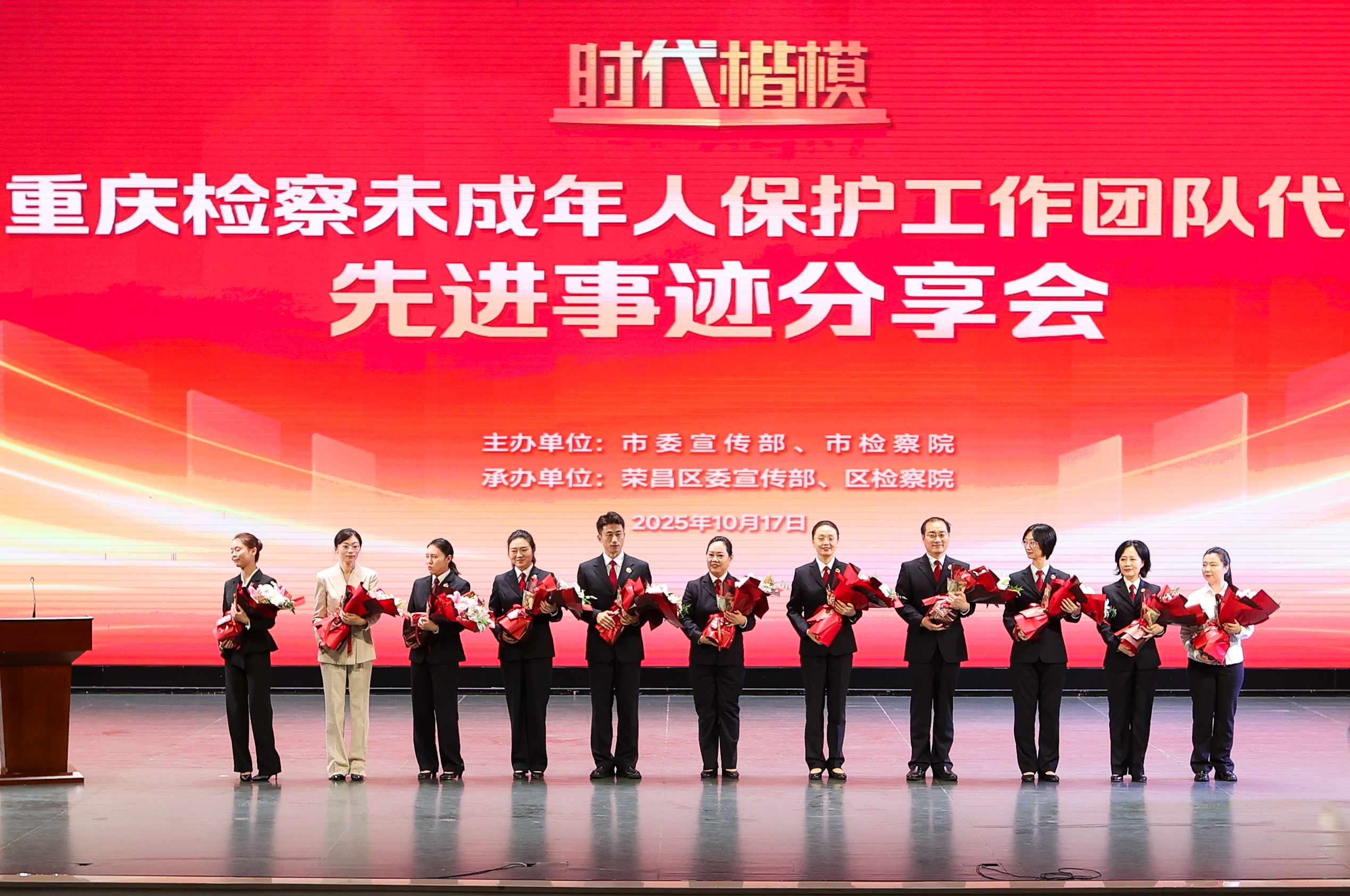 向榜样看齐,汲取前行力量。10月17日,“时代楷模”重庆检察未成年人保护工作团队代表(以下简称渝检护“未”团队代表)先进事迹分享会在荣昌区举行。 ▲2025年10月17日,荣昌区荣昌剧院,“时代楷模”重庆检察未成年人保护工作团队代表先进事迹分享会现场。记者 尹诗语 摄 分享会上,渝检护“未”团队代表梅玫、龚珊、唐焕然、吴波、李非白、孙文静、王莉7名同志以及重庆检察未成年保护工作负责人、服务对象等一一上台,讲述渝检护“未”团队代表21年来坚持“德法相伴、倾情守护未成年人健康成长”的感人故事。 ▲2025年10月17日,荣昌区荣昌剧院,“时代楷模”重庆检察未成年人保护工作团队代表先进事迹分享会现场,代表们合影。记者 尹诗语 摄 “为孩子多做一点” ▲先进事迹分享会现场,市检察院党组成员、副检察长詹文渝进行分享。记者 尹诗语 摄 “2004年,首个‘莎姐’青少年维权岗在大渡口区检察院诞生时,没人想到这星星之火,会跨越两个十年、壮大成为如今500多人的渝检护‘未’团队。”市人民检察院党组成员、副检察长詹文渝说。 大渡口区人民检察院党组成员、副检察长梅玫分享了她和孩子共同成长的故事。21年前,法庭上一个少年委屈地哭诉:“爸妈离婚没人管我!被人欺负没人帮我!现在我犯了错,你们都来审判我!” ▲先进事迹分享会现场,大渡口区检察院党组成员、副检察长梅玫进行分享。记者 尹诗语 摄 “如果在他坠入深渊前就伸出援手,他的人生会不会是另一番模样?”梅玫感悟,握在自己手里的不只是案卷,更是孩子的人生,“我们要做的不只是定罪量刑,更要帮迷途的孩子找到回家的路。” 他们打定主意:为孩子多做一点。由7个人组成的重庆市首个“莎姐”青少年维权岗就这样诞生了。打造谈心室、走进学校上法治课、组建志愿服务队、联动社会各方力量……越来越多的法律工作者、社工、志愿者加入进来,和“莎姐”一起践行“为孩子多做一点”的初心。 “严惩犯罪,还远远不够!我在想,能不能建一个像家一样的地方,让孩子一次就能完成身体检查、心理疏导、案件询问等,把伤害降到最低。”市人民检察院未成年人检察部副主任龚珊说。 ▲先进事迹分享会现场,市检察院未成年人检察部副主任龚珊进行分享。记者 尹诗语 摄 龚珊不满足于个案的办理,推动建立全国首个省级教职员工入职查询平台,和团队一起推动落实强制报告制度,探索创建未成年被害人一站式询问救助中心,把对孩子的爱化为行动,构筑全方位防护未成年人成长的制度“防护林”。 “以国家之名站在孩子身后” ▲先进事迹分享会现场,市检察院第二分院未成年人检察部三级高级检察官吴波进行分享。记者 尹诗语 摄 市人民检察院第二分院检察官吴波扎根三峡库区15年从事未检工作。在他眼里,案件的背后,既有法律的威严,也有司法的温情。 为了一封来自服刑人员的信,为了无人照管的两个孩子,他驱车百里来到大山深处。一趟趟跑相关部门,在他的努力之下,最终,两个孩子被纳入保障范围。 细心的吴波还了解到,孩子们被同学们嘲笑侮辱,性格变得孤僻而自卑,于是,他又联系心理老师做辅导,直到孩子们脸上绽放出笑容。 “当我把所做的一切都告诉服刑人员张某,他一下子就哭了。他说,没想到一封信,你却做了这么多,我一定好好改造,早点出去和孩子们团聚……”吴波感慨说,那一刻,自己深深体会到法律不仅要惩罚罪恶,更要传递温暖。 案子办结,但守护没有期限。 市人民检察院第三分院未成年人检察部副主任李非白讲述了《以国家之名站在孩子身后》的故事。 ▲先进事迹分享会现场,市检察院第三分院未成年人检察部副主任李非白进行分享。记者 尹诗语 摄 7年前,一场车祸带走了3名女孩的父亲,母亲此前早逝,女孩们一夜之间成了孤儿。 “难的不是办理交通肇事案,而是案件办结后,孩子的明天在哪里?”李非白说。解决监护问题、落实孤儿津贴、争取临时救助……她和同事用3年陪伴,成为3名孤儿身后最坚实的依靠。 “前不久家访,看见女孩们阳台上摆满了绿植,还养了小猫小狗,那种发自内心的笑又回到了她们脸上。”李非白感慨道,办案有期限,“守护”没有期限,“不管多难,都要竭尽全力,守护孩子茁壮成长。” “长大后,我就成了你” ▲先进事迹分享会现场,璧山区人民法院法官助理韩丹进行分享。记者 尹诗语 摄 璧山区人民法院法官助理韩丹讲述了《长大后,我就成了你》的故事。十年前,一堂法治课在她心中种下光的种子;十年后,她追光而来,坚定报考法学院校,终于穿上了一身政法制服。从被守护到守护者,她是“渝检护‘未’”路上最动人的回响。 据介绍,渝检护“未”团队主要从事办理涉未成年人案件、保护未成年人合法权益等工作,团队牢记“孩子们成长得更好,是我们最大的心愿”的嘱托,用法守护未成年人成长之路,用爱诠释社会温度,从法律条文中感悟法治精神,在法理情的有机统一中实现公平正义,为保护未成年人健康成长作出了突出贡献,对促进提升未成年人保护领域的社会治理效能发挥了重要作用。 从2012年维权岗推广到全市检察机关,由1个拓展到45个,到2018年吸纳社工、医师、志愿者等参与进来,组成综合施治的“护未联盟”,再到2023年重庆全域部署“莎姐守未”专项行动,凝聚起“六大保护”合力,共护