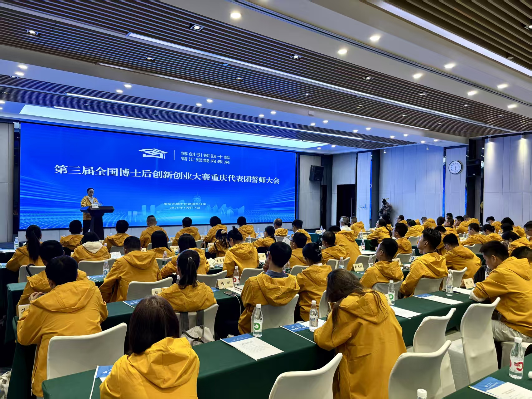 10月17日,第三届全国博士后创新创业大赛重庆代表团誓师大会在中国·重庆人力资源服务产业园举行,吹响了进军全国总决赛的冲锋号。 会上,107名博士后精英庄严宣誓,将携58个高水平创新创业项目,于10月26日至28日奔赴福建泉州,与全国1700余个顶尖团队同台竞技,全面展示重庆青年科技人才的创新创业实力。