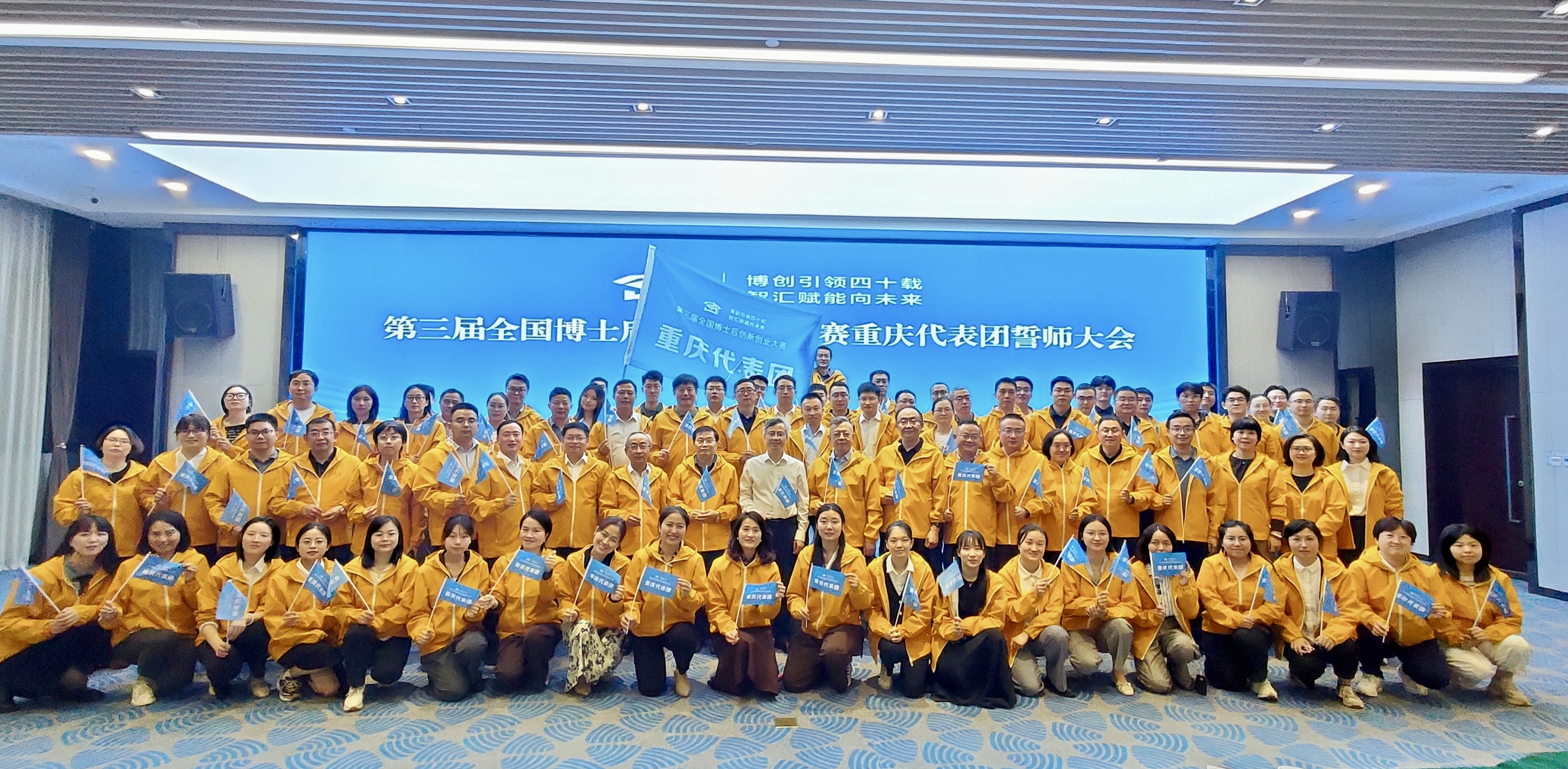 重庆代表团宣誓 “希望大家灵活运用备赛经验,精准捕捉问题要害,逻辑清晰地阐释观点,用你们深厚的专业底蕴,展现我们重庆博士后扎实的专业功底与卓越的综合素养。”重庆工商大学教授、第三届博创赛重庆代表团导师李宁说道。 厚植沃土:博士后工作“三个提升”彰显人才集聚效应 重庆代表团的强势出征,正是重庆通过为博士来渝“搭台子”、为科研活动“给票子”、为安心留渝“铺路子”等举措,聚力打造最优人才生态的生动写照。 据悉,近年来,重庆博士后工作已实现“三个提升”的显著成效:招收规模持续提升,较2020年增长了68%;培养质量持续攀升,近三年每年申请获得国家三大基金近800项,近两年重庆市科技进步一等奖获奖项目,博士后参与项目有34项,占91%;留渝比例持续提升,出站留渝率由2020年的80%,提升到了现在的90%。