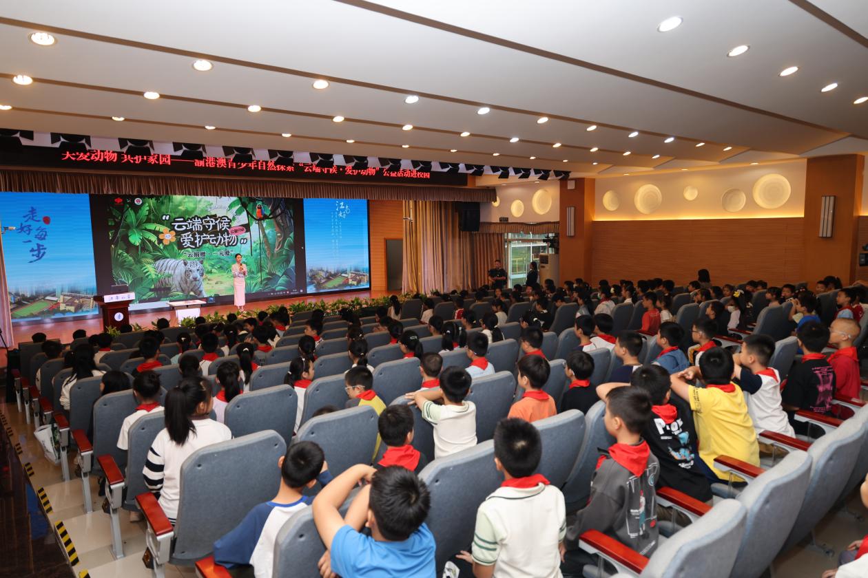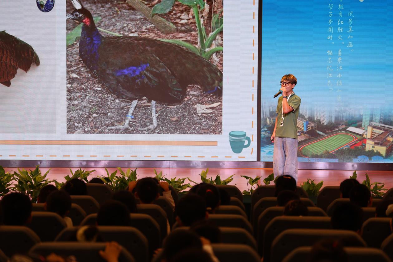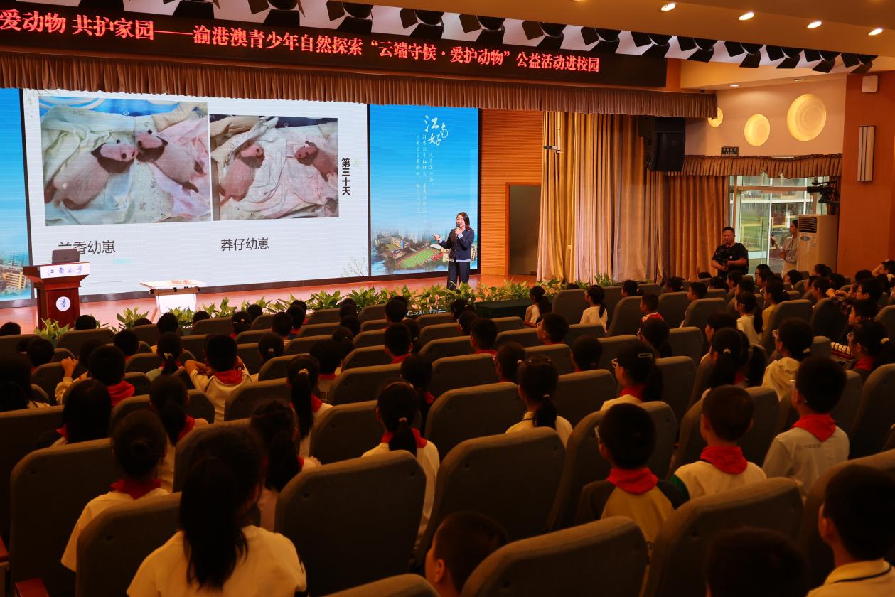 大熊猫“肩带”皮毛和皮肤有着怎样的秘密?白孔雀是如何而来?10月17日下午,2025 年渝港澳青少年自然探索“云端守候·爱护动物”公益行动“云捐赠·一元爱”活动走进重庆市南岸区江南小学校,来自重庆动物园的动物科普老师们,为同学们带去了关于大熊猫、孔雀、乌鸦、鹦鹉等众多动物的秘密。