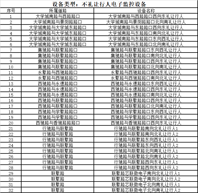 不礼让行人电子监控设备(32套) 抓拍违法行为:遇行人正在通过人行横道时未停车让行。