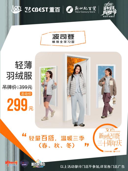 第六届百年重百购物节,“幸福盲盒”空降重庆!10月25日-11月2日来解放碑步行街打卡抽大奖,用支付宝碰一下,有机会赢iPhone17!重庆百货四大业态掀起消费热潮。这场年度盛事不仅以实实在在的优惠让利山城消费者,更以涵盖品质生活、温情敬老、智能科技与豪华出行的全方位体验,诠释着百年商业品牌的服务深度与多元魅力。 新世纪百货30周年庆持续火爆上映!以品质生活致敬山城信任。 品质坚守,三十年如一 新世纪百货将服饰品质管控刻入基因:建立四重质检体系(签约索证→入库验收→售前检查→售中监督),从源头杜绝劣质商品;首创“15日不满意退换货”承诺,30年退换率低于市场平均水平,铸就“商品至优”口碑。本次活动精选时尚大牌如斐乐定制系列、米梭羊绒等均通过严苛筛选,成为重庆人“穿得放心”的首选。 周年庆典,双惠同启 值此30周年庆,新世纪百货推出服饰特惠:限量发售斐乐城市定制款,联合墨素、波司登、米梭等品牌推出199元羽绒服、499元100%羊绒衫等品质尖货。 全城50家门店联动为广大市民推出系列感恩活动,消费满额加赠品质惊喜礼,线上线下同步开启“重百云购10档大牌日”直播,联合品牌让利,打造一次全域狂欢盛宴。 “以好物品质为礼,致敬山城三十年相伴!”——新世纪百货以严控商品力与温情活动,重塑零售温度。