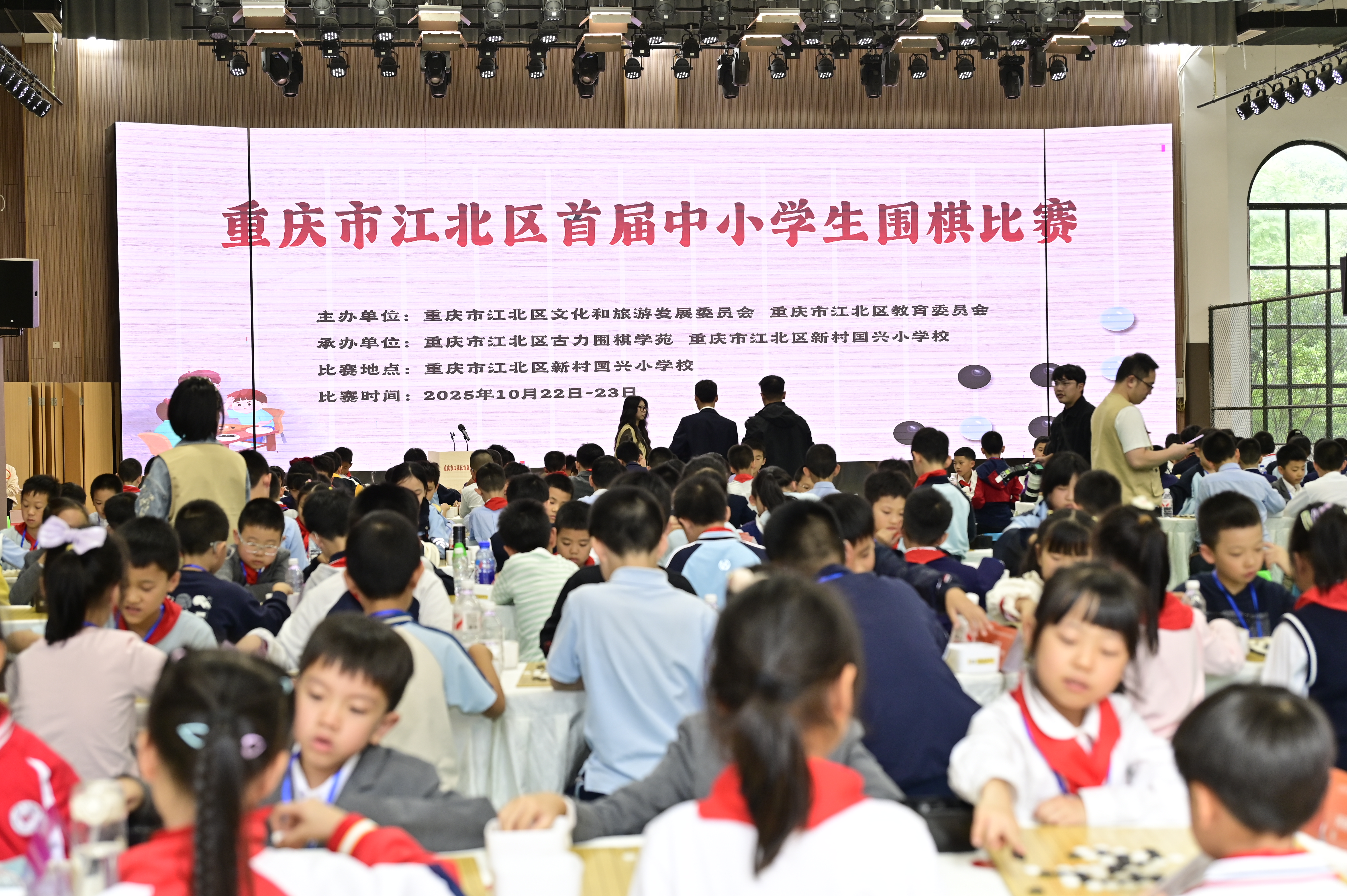 10月22日至23日,重庆市江北区首届中小学生围棋比赛在江北区新村国兴小学成功举办。来自全区的75支代表队、225名中小学生棋手齐聚一堂,以棋会友,在黑白纵横间展示智慧与风度。