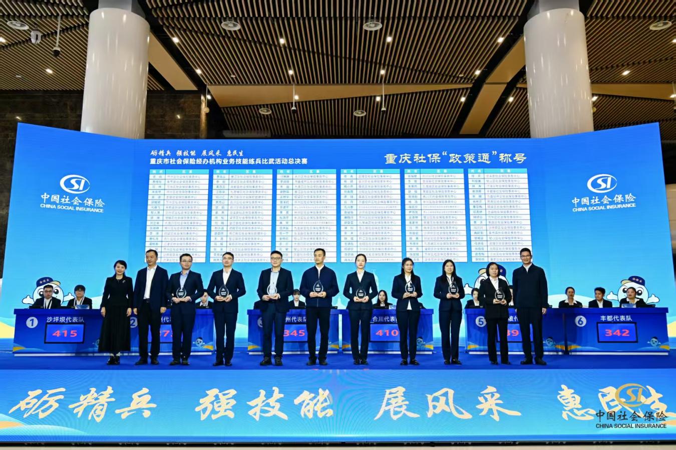 ▲为参赛选手代表授予重庆社保“政策通”称号 经过激烈角逐,沙坪坝区代表队脱颖而出,夺得第一名;合川区、九龙坡区代表队获第二名;万州区、开州区、丰都县代表队获第三名。此外,14个区县获优秀组织奖,6名选手获评现场“最佳风采奖”,102名选手获评重庆社保“政策通”称号。至此,这场历时两个月、覆盖全市社保系统的技能大练兵圆满收官。