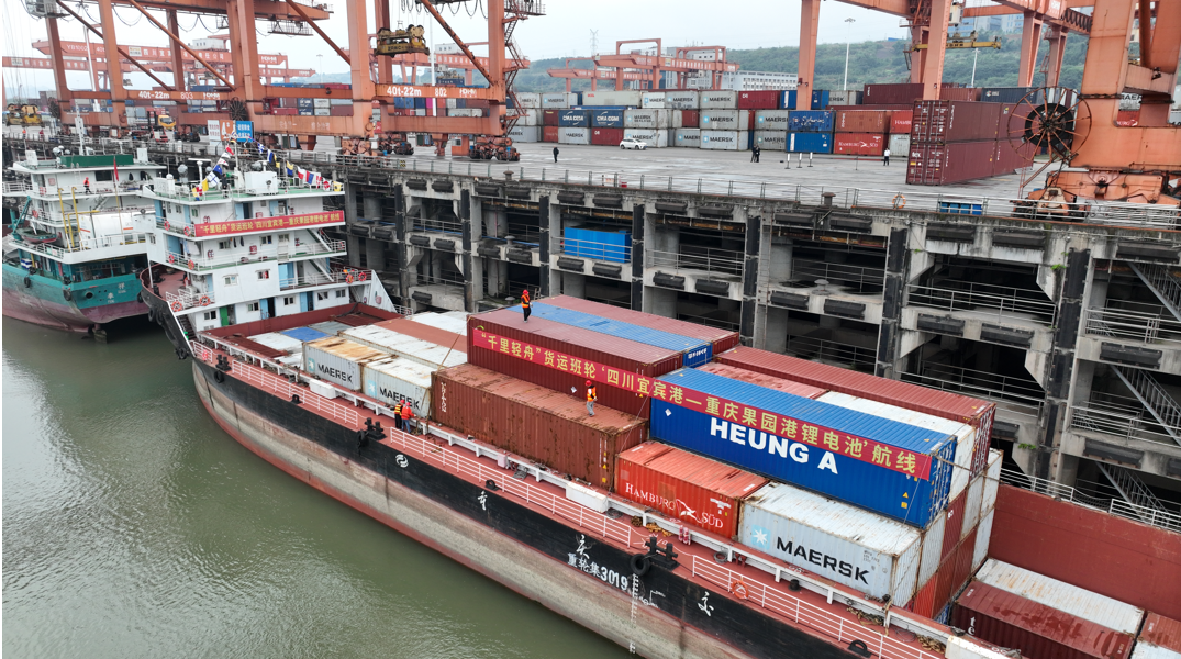 10月25日,“重轮集3019”货轮装载着10个标准集装箱锂电池从四川宜宾港驶出,“千里轻舟”“四川宜宾港—重庆果园港”锂电池运输航线首航启运,标志着重庆“千里轻舟”货运班轮从三个月试点开行迈入了常态化运行新阶段。