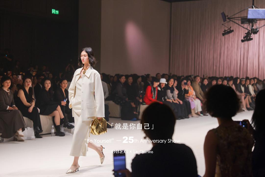 2025年10月25日,中国高端女装品牌 OBEG 于重庆康莱德酒店举办25周年时光秀“就是你自己”。本次活动以“女性成长与自我认同”为主题,融合视觉艺术、空间叙事与精神共鸣,呈现一场跨越25年的时光回望与自我对话。重庆市相关政府领导、行业协会代表、品牌核心客户、时尚媒体、买手、KOL及艺术圈嘉宾齐聚一堂,共同见证OBEG的精彩时刻。 一场关于“成为自己”的时光叙事 自2000年创立以来,OBEG始终以“为见面而生,为场合而在”为品牌理念,通过“场合哲学”精准洞察现代女性在不同生活情境中的多元身份。25年来,OBEG不仅见证了中国都市女性从“想成为”到“是自己”的蜕变历程,更以时装为媒介,参与、记录并诠释她们的精神成长。 在本次大秀中,OBEG正式发布品牌战略升级的全新布局——双品牌体系: OBEG:代表都市女性的锋芒与力量; Le Charme:表达东方女性的内敛与自洽。 两者如镜像般交织,共同构筑当代女性完整的自我表达图景。 时光剧场:25年共生的美学回望