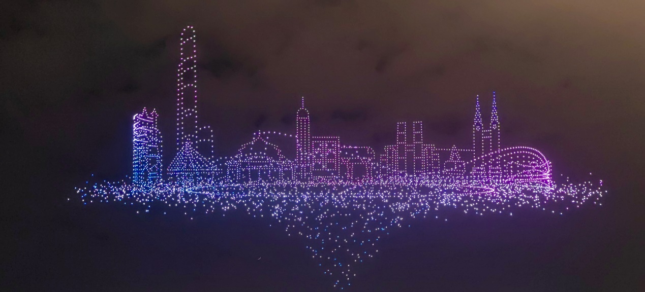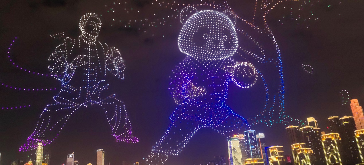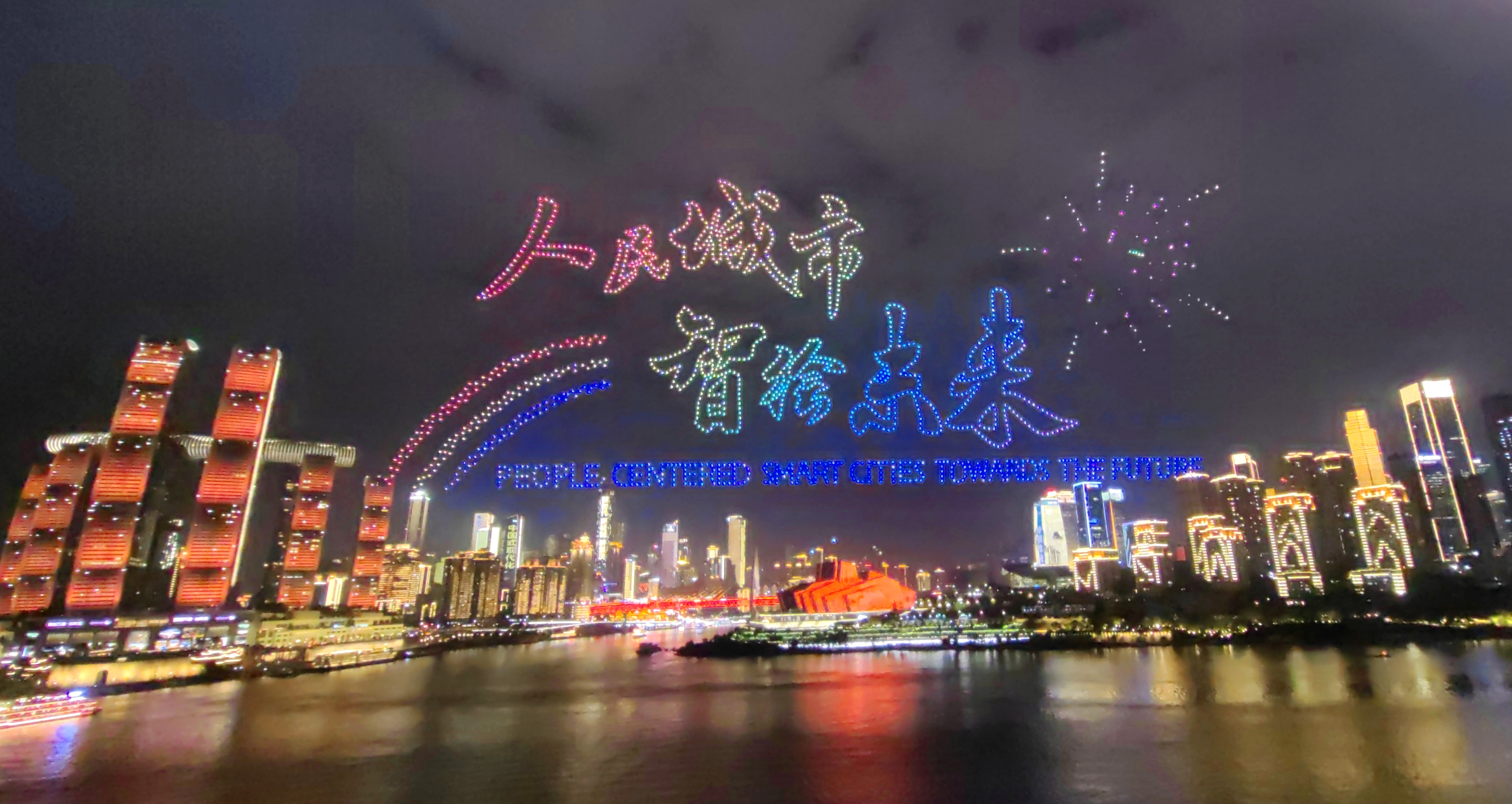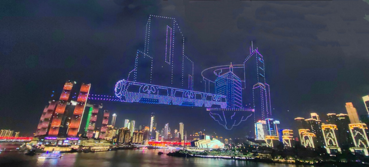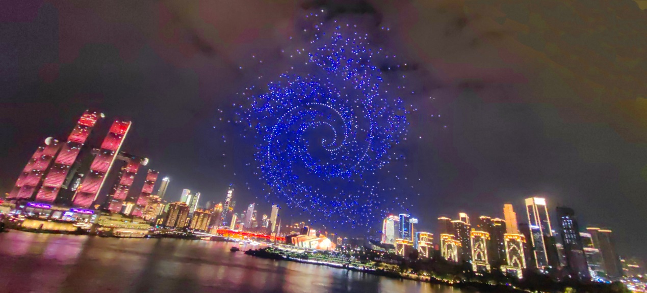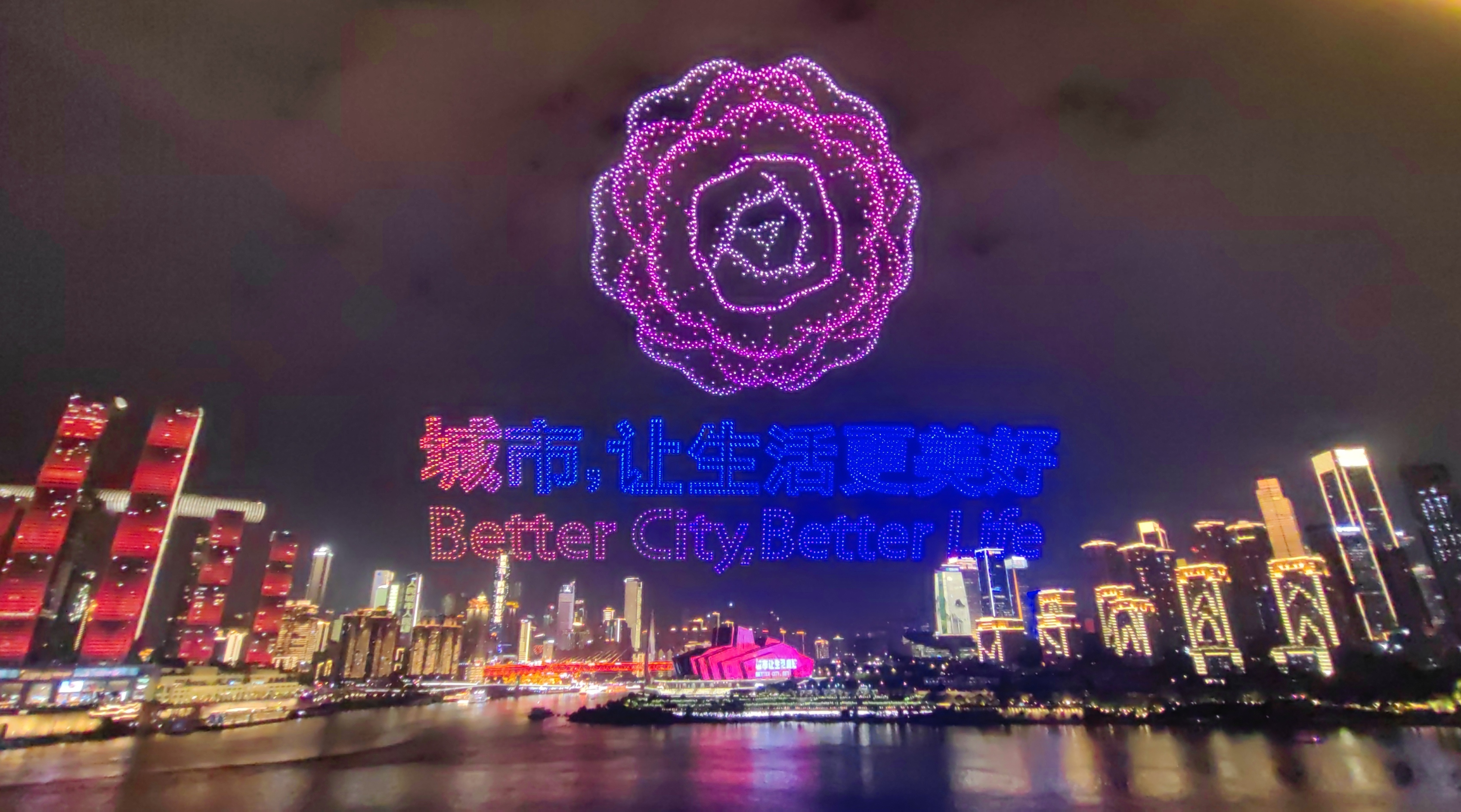 10月27日晚,“新韵重庆”无人机灯光秀——2025世界城市日专场展演,在重庆两江交汇之畔震撼上演。这场以“人民城市 智绘未来”为主题的无人机灯光秀,用科技美学于重庆夜空共绘城市华章。