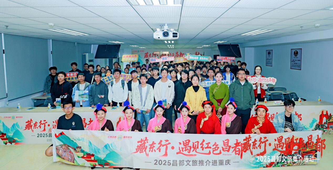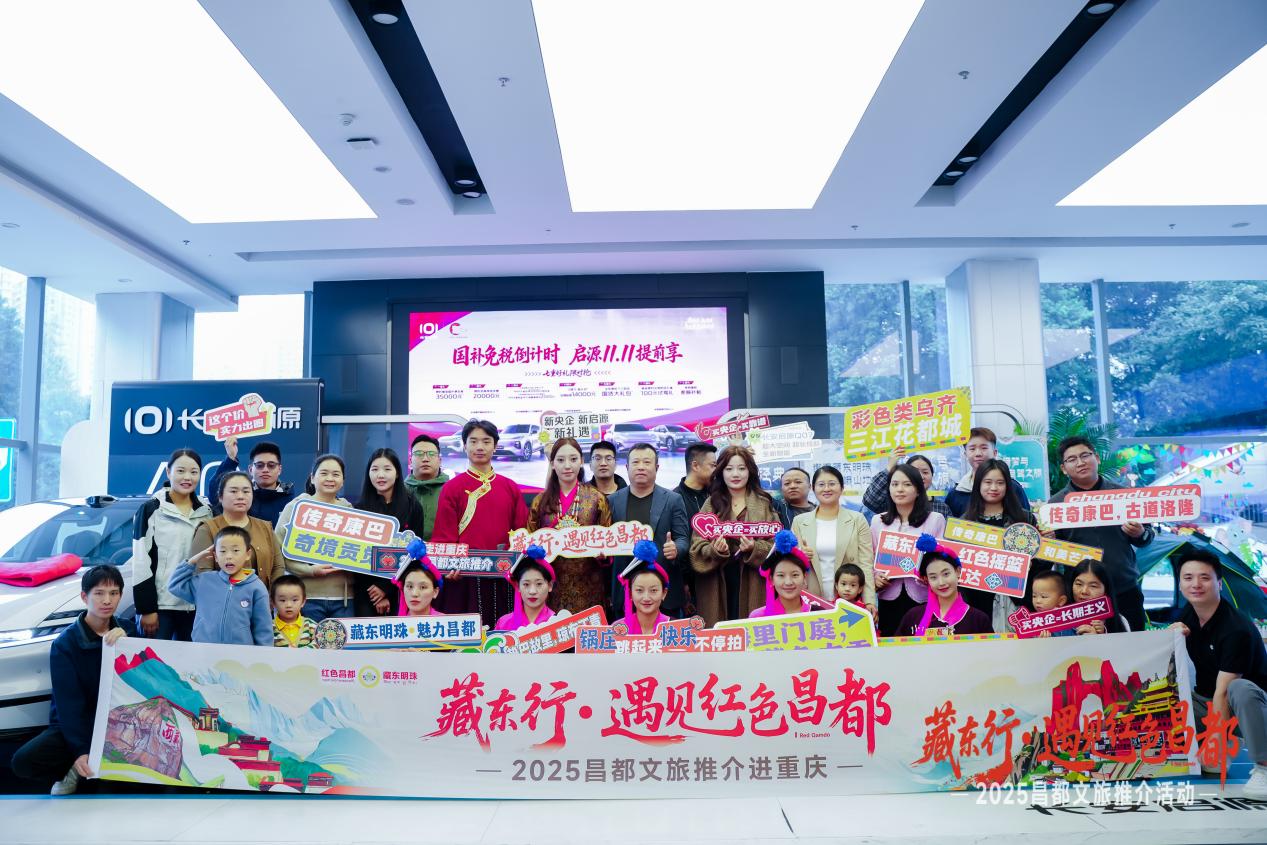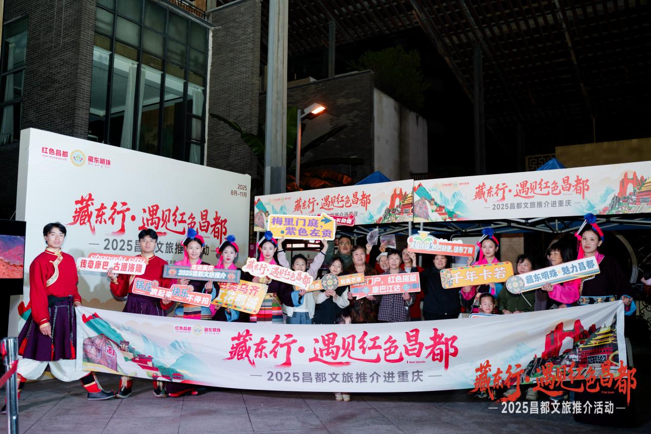 2025年10月23日至26日,昌都市文化和旅游局主办、昌都市茶马文化旅游发展集团有限公司承办的“藏东行·遇见红色昌都”文旅推介系列活动在重庆成功举办。此次活动通过城市推介、企业对接、高校互动、社区展演与文旅快闪等多元形式展开,得到了重庆市文化和旅游发展委员会的大力支持,充分彰显了对昌都文旅援藏工作的积极助力。活动以“三进”(进社区、进企业、进高校)为脉络,全面展示昌都红色文化与旅游资源,为渝昌文旅协作开辟新路径。 推介团在重庆市江北区“百城同心·渝见精彩”2025百城营销活动上精彩亮相。昌都文旅推介官以“一脉古道、一域三江、一味康巴、一门通衢”为脉络,生动展现昌都古道新颜、广袤山水、康巴文化、特色美食,让嘉宾沉浸式感受“藏东明珠”魅力。昌都弦子舞惊艳上演,演员身着民族服饰,以灵动舞姿传递藏东风情,引发现场热潮。签约环节,昌都市茶马文旅集团旗下旅行社与重庆本地多家旅行社签订合作框架协议,签约双方约定在资源共享等方面深化协作,助力昌都文旅品牌发展。