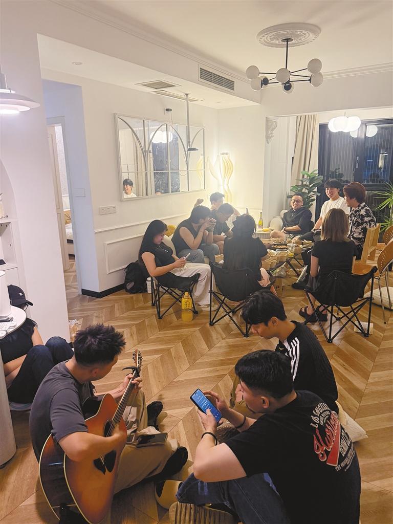 ▲饭后,大家在一起聊音乐、唱歌。 参与者涉及各行各业 来吃饭的人都是在小红书上私信报名,什么职业都有:老师、程序员、自媒体博主、大学生、上班族……年纪最小的还在读大学,最大的四十出头。 土土聊起几个让他印象深刻的参与者:一个刚开始很紧张的女大学生,后来成了笑得最大声的那个;有一位内向话少的男孩,默默盛了第三碗饭,临走前小声问:“下次我还能来吗?”还有一位北师大毕业的舞蹈老师,每次来都会被大家起哄跳一段,气氛一下就热起来。 “陌生人之间,其实没那么远的距离。”土土说,饭后的状态往往是“窝在沙发上继续聊天玩游戏”,有时甚至约好凌晨一起去爬山看日出。 他坦言:累,但停不下来 组织一场饭局并不轻松。从买菜、备餐、做饭到收拾卫生,得一整个下午。“每次办完,都觉得第二天爬不起来。”土土笑着说。 那赚钱吗?他坦言:“目前是只亏不赚,没仔细算过成本收益。” 虽然总喊“太累了,一周最多办一次”,但“胡闹厨房”带来的快乐和温暖,让他们停不下来。土土说,“做活动最有意思的,是看到原本平行的人生轨迹在同一张饭桌上产生了交集。” 对于未来,他们希望“胡闹厨房”能做得更规范、品牌化,招募更多发起人,尝试不同主题,甚至固定场地,让这个温暖的“门”一直敞开。 大家说 @小尹 25岁 新媒体运营 “社牛如我,第一次参加时,我同样会紧张。怕没有话聊,怕融入不了大家。但实际上,到了之后完全没有尴尬,我特别享受那种‘没有社交负担’的松弛感。” @终于找到了组织骨木 28岁 艺术类教师 从湖南来重庆定居 “我从来没有对他人的人生这样惊叹、羡慕,甚至震撼。伴着江风夜景和夏末的微雨,这顿椰子鸡火锅的味道,也成了我在这座新城市记忆里温暖的一部分。” @舞燕 29岁 央企行政人员 来自山东淄博 “让我印象最深的是饭后的游戏环节,无论是‘幼稚的小玩笑’还是‘深刻的心里话’,大家都愿意敞开了聊。” 重庆晚报-厢遇记者 李琅 实习生 于文清 受访者供图 编辑:戴林 校审:罗再芳 总值班:杨飞 |