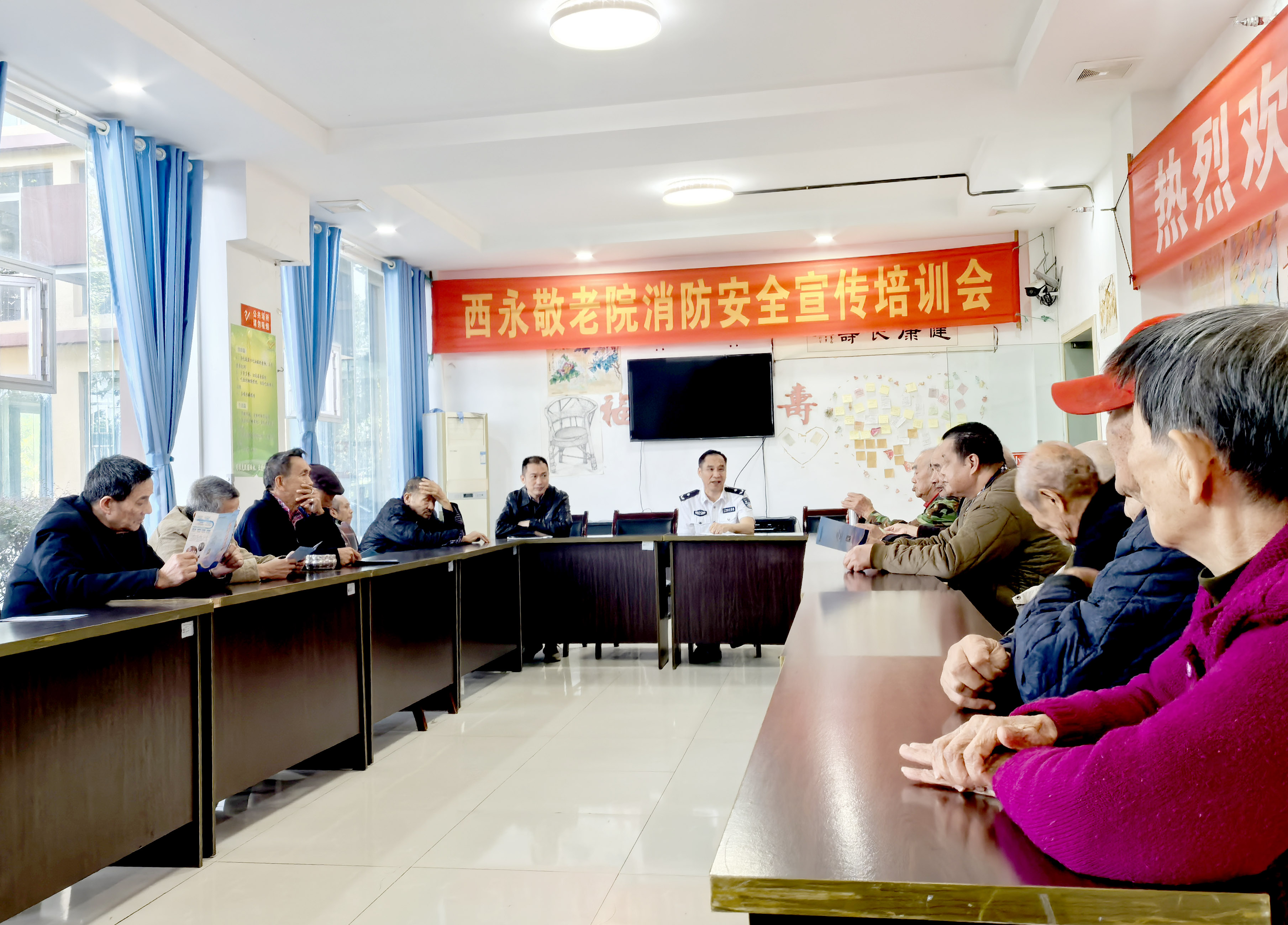 ▲队员侯钰开展反诈宣传 除精准反诈宣传外,队员们还化身“安全员”,对敬老院内消防设施、电线线路展开全面排查,重点检查电线老化、线路破坏及私拉乱接等安全隐患。排查结束后,消防安全知识科普活动随即开展。