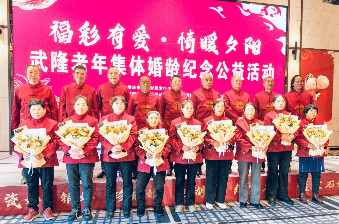 10月28日,武隆区仙女山福彩爱心公园内爱意融融,9对携手走过数十载春秋的老年夫妇,在这里参加由重庆市武隆区民政局主办的“福彩有爱·情暖夕阳”老年集体婚龄纪念公益活动。