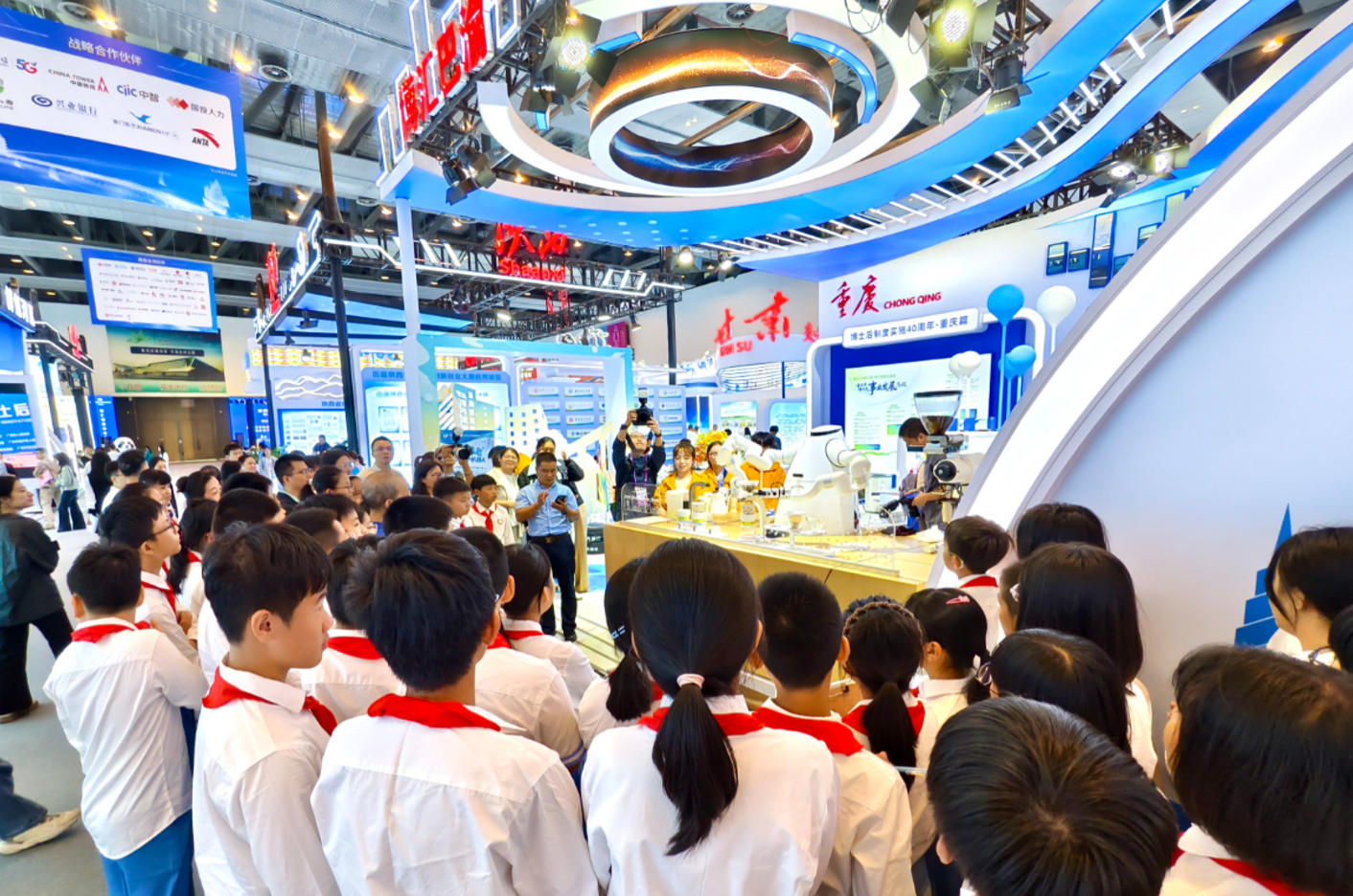 学生们观看“智咖大师”手冲机器人 西南铝业C919客机观察窗模锻件前,观众触摸着“大国重器”的重庆精度;长安汽车新蓝鲸混动总成展示区,聚焦着业内人士探寻的目光;西南大学金色蚕丝在灯光下流光溢彩……十余件展品,不仅让人眼前一亮。 值得一提的是,重庆代表团还组织设站单位及博士后积极参加成果转化、创业服务、人才招聘和创新创业主题交流等活动。截至目前,重庆共发布博士后招收岗位1000个左右,发放招收资料2000余份,收到意向简历200余份。 厚积薄发,“亮眼成绩”背后的重庆人才密码 3金7银9铜的“战绩”背后,是一套深耕人才沃土的“重庆方法论”。近年来,重庆健全博士后“引育留用”全链条机制,持续营造最优人才生态,推动高层次人才队伍实现从“量”的积累到“质”的飞跃。 目前,重庆市博士后工作已实现“三个提升”,招收规模连续4年保持在1000人以上,较2020年增长了68%;培养质量持续攀升,近三年每年申请获得国家三大基金近800项,近两年重庆市科技进步一等奖获奖项目,博士后参与项目有34项,占91%;留渝比例持续提升,出站留渝率由2020年的80%,提升到了现在的90%。 重庆市人力社保局相关负责人表示:“全国博士后创新创业大赛既是‘试金石’,更是‘助推器’。我们将做好大赛后半篇文章,让人才力量更好地‘变现’。” 撰稿:张馨允 主办方供图 编辑:蒋丽霞 审核:何英 主编:罗再芳 |