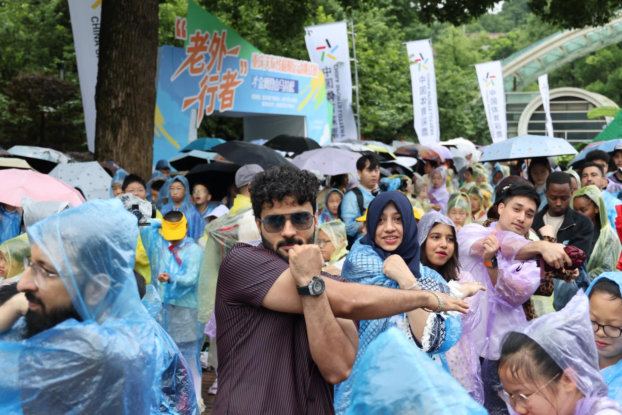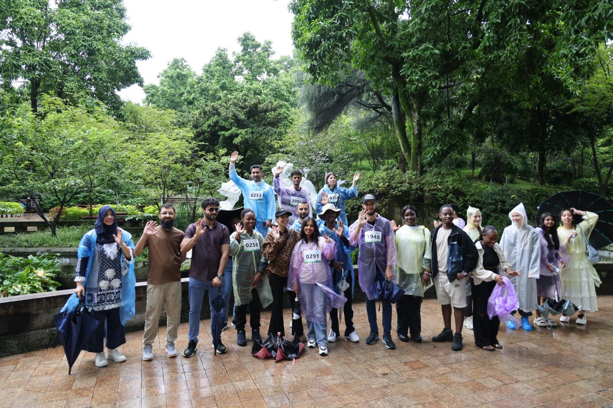 活动开始前,在专业教练带领下,留学生们活力满满地进行着热身运动,舒展着身体,为即将到来的徒步登高做好充分准备。 随着出发号令响起,留学生们在重庆南山植物园讲解员的带队下从南山植物园广场出发,大家沿着既定路线,走过古色古香的石桥,穿梭于美丽的盆景园,探访肃穆庄严的大轰炸防空洞教育基地,漫步在使馆群落,最后抵达金鹰园,成功登上大金鹰观景台,全程约5公里,终点海拔682米。