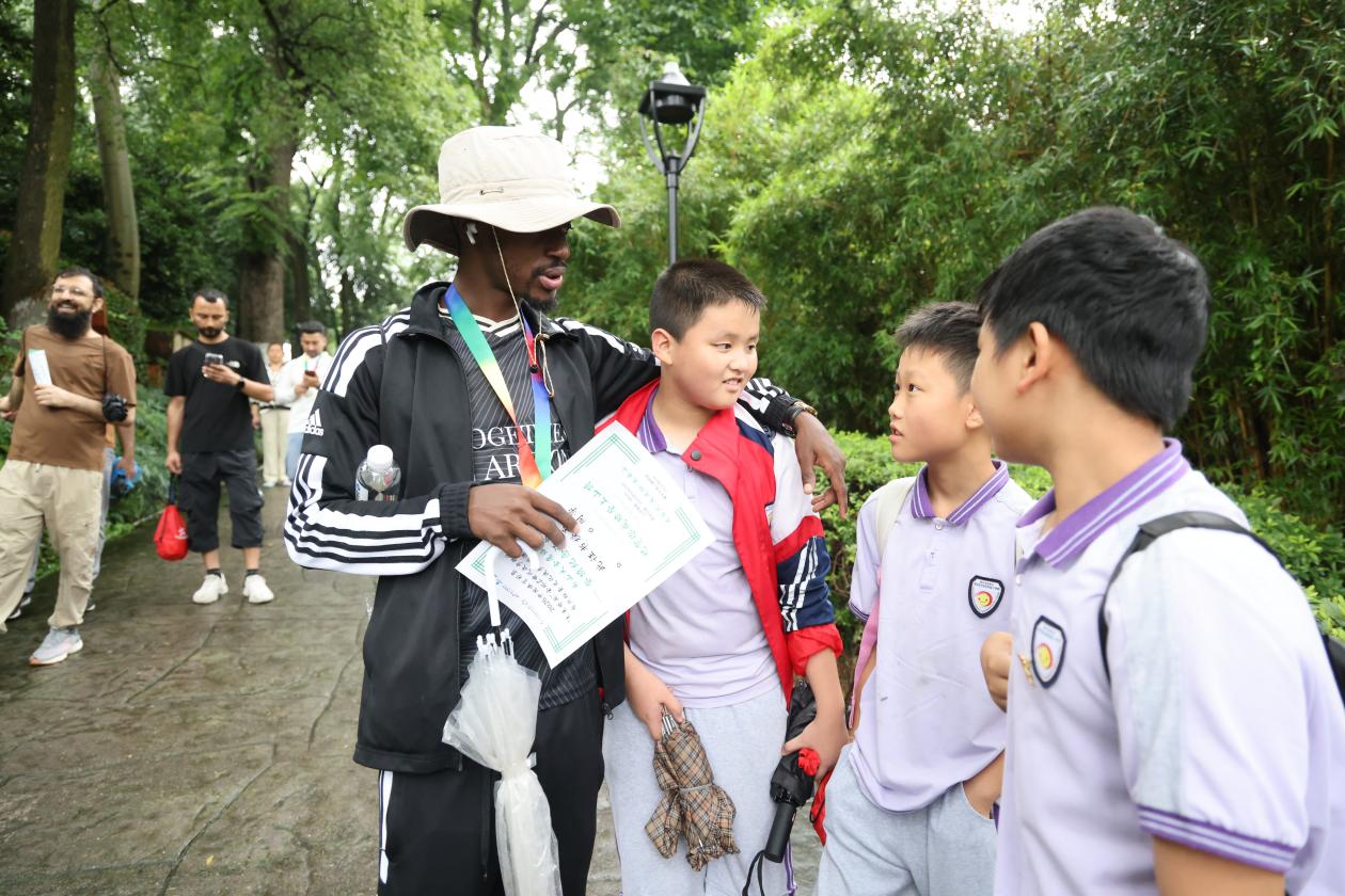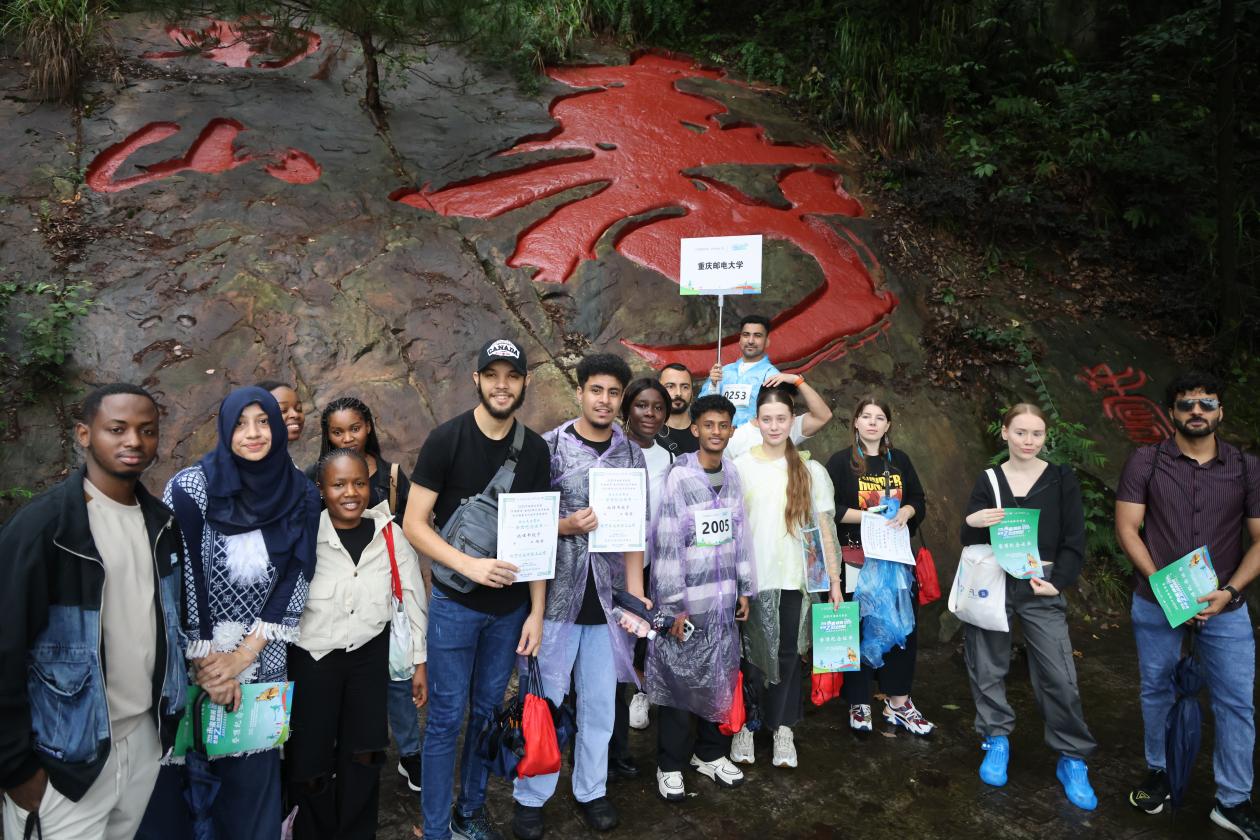 路途中,也有同学因体力消耗比较大,有些力不从心,大家互相鼓励,调整呼吸和步伐,一步一步迈向终点。 活动结束后,留学生们纷纷称,“站在大金鹰观鸟台,整个重庆的景色都在脚下,太壮观了,感觉特别震撼!”“路上遇到的那些历史建筑,像法国大使馆旧址让我非常感兴趣。走在山林里突然看到这么有故事的房子,感觉特别奇妙,像穿越了一样。”“这次活动中,最难忘的是爬那段比较陡的山路!虽然累得够呛,但坚持到顶后,那种成就感和大家一起欢呼的感觉,特别棒!”“这一路上,我认识了好多植物,知道了它们的名字和故事,感觉大自然更有趣了。”