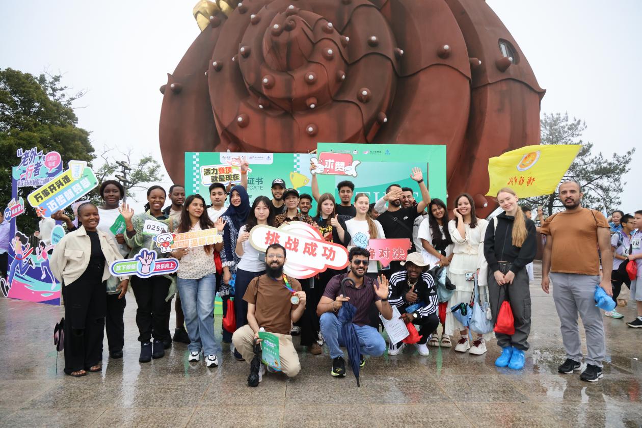 一路上,留学生们不仅挑战着自己的体能,更沉浸在丰富的历史文化与奇妙的自然世界中。 当留学生们爬到半山腰的时候,穿过一片茂密树林,大家突然眼前豁然开朗,能看到远处连绵起伏的山峦和山间缭绕的云雾,就像一幅水墨画。“好漂亮!”“真的很美!”这一刻,有留学生被大自然的美征服了,赶紧拿出手机拍了好多照片,想分享给远在国外的家人和朋友。