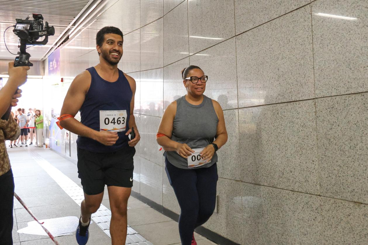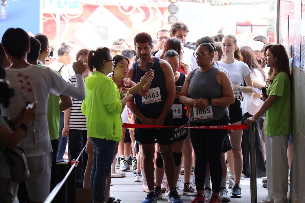 活动现场,选手们在专业教练指导下完成了赛前热身。“5、4、3、2、1”,随着比赛号角的吹响,选手们两人一组,按照每15秒一组的节奏,在起点有序地扫码计时后出发。 “加油!”一路上,有市民为外国友人们加油鼓劲。“我们做到了!”当大家迈过最后一级台阶后,开心地说道,并到了打卡点拍照留念。