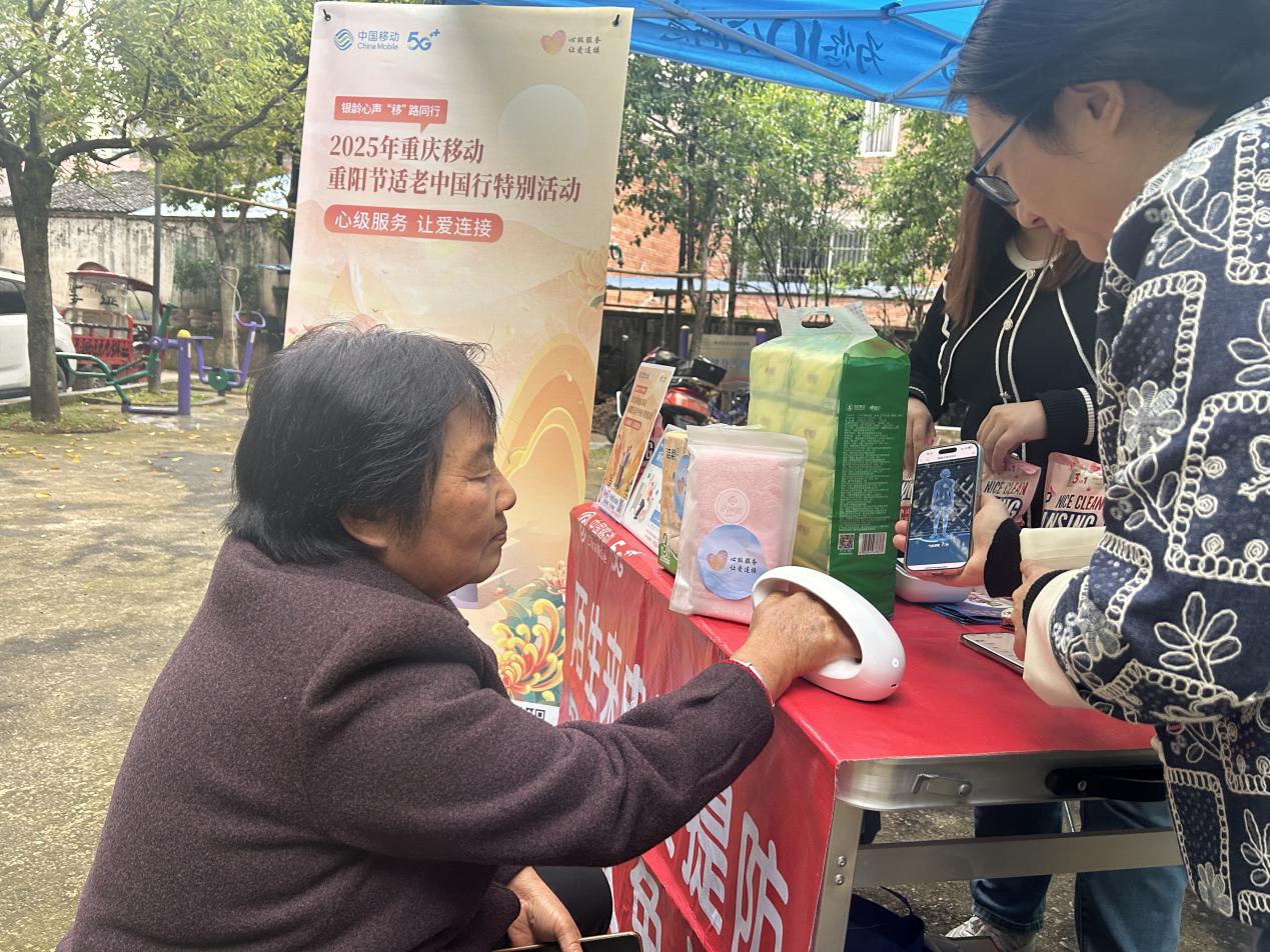 (中国移动重庆公司酉阳分公司适老活动现场) 便民服务进街巷:中医融合数智设备,走进百姓生活 “阿姨,把手掌轻轻放在这个传感区,3分钟就能出中医体检结果,3 分钟就能出中医体检结果。”在梁平一社区的中国移动重庆公司便民服务点,工作人员指导老人体验着智能中医体检仪。 据了解,该设备以传统中医辨证理论与现代智能科技为核心,通过“AI算法+生物电传感+红外热成像”相结合的技术,精准捕捉人体生理信号,可一次性提供12项核心身体指标的可视化体检报告。体检结果实时同步至手机APP,不仅支持文字显示,家属还可通过关联账号远程查看老人的健康状况。